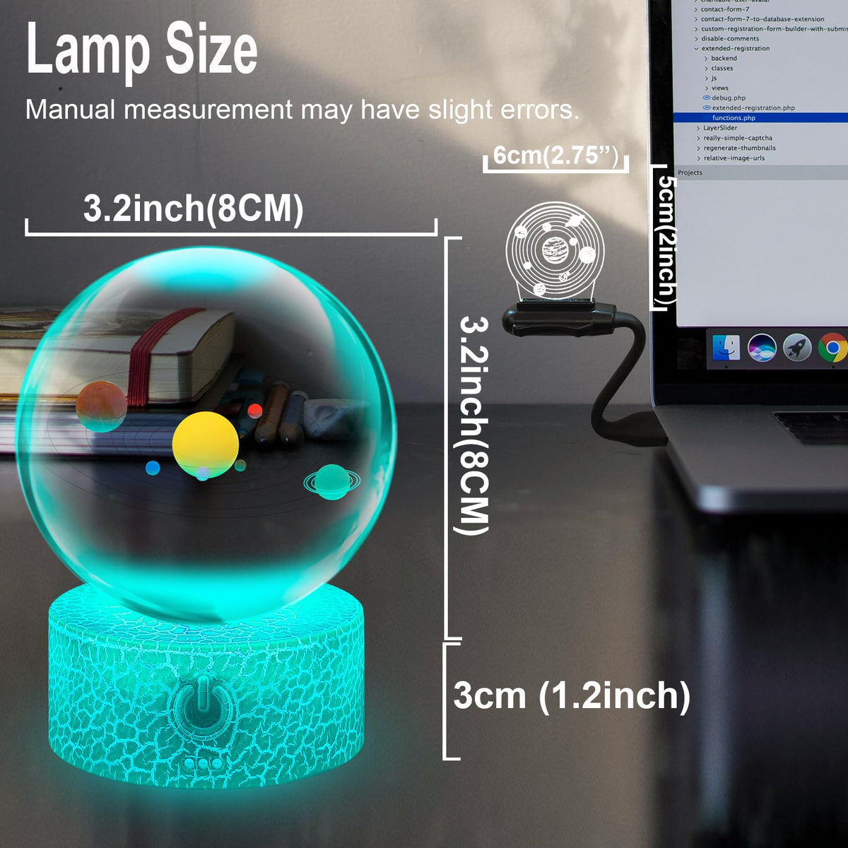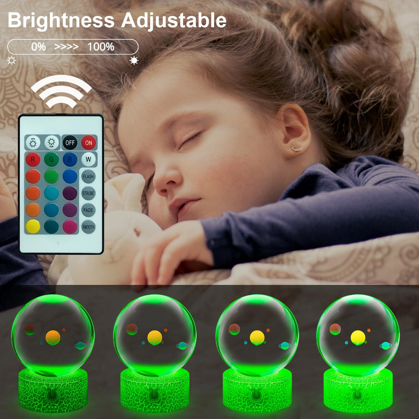 Crystal Ball Lamp 3D Crystal Ball Solar Colorful 9 Planets Sun Earth Mars Lamp with Touch Stand LED 16 Colors Changing Dimmable