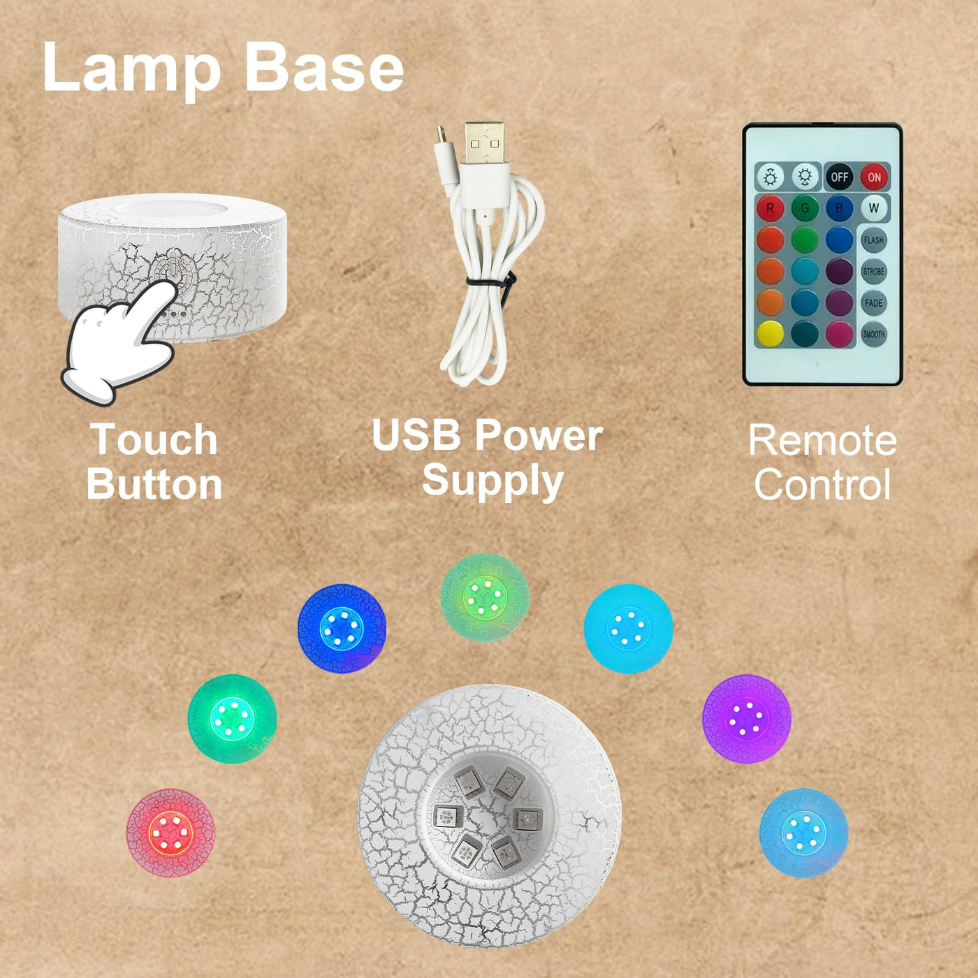 [3D Effect Crystal Ball Lamp] This Crystal ball light is made of clear glass crystal which is durable to use, the inner pattern of the crystal ball combined with 3D engraving technology, so that the lamp have 3D effects and levitation effect. It is a great decoration for home bedroom Office Cafe, made a warmth environment for you. | [Intelligent Conrtol] The light can be controlled by Touch buttons or Remote control. (1) Touch control can cantrol the opening and closing of the light, Change 7 colours of the light, and change the flashing mode. (2) Remote control can change 16 colours of the light, adjust the brightness, and there are 4 different modes can be selected(flash, strobe, fade, smooth) | [Multifunctional luminous ] (1) It has seven light colors: red-blue-green-purple-cyan-yellow-white (2) The brightness of the light can be adjusted according to the needs of daily use (3) 4 automatic modes: flash, strobe, fade, smooth | [Gift Idea] This Crystal Ball Lamp has a lot of pattern to suit different people and ages. It is a perfect Gift idea for women, men ,kids, friends, gril, boy, families in different festivals, such as Birthday, Christmas, Valentines Day, Mothers Day, Fathers Day, Anniversary, Graduation, Thanksgiving, Housewarming. | [Product Qualit] Our products are checked by professional QC department before packing to ensure product quality, we also provide online customer service. Providing customers with the best shopping experience is our top priority.