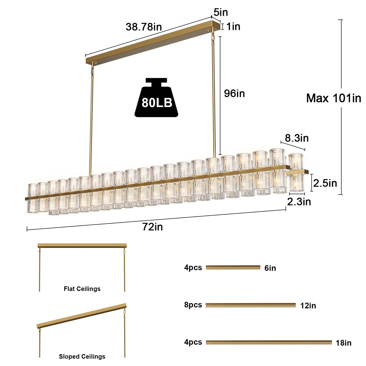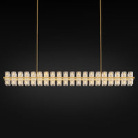 Crystal Brass Rectangular Chandelier Light Fixture,72 In Dining Room Chandelier Over Table,Modern Chandelier For Living Room,Arc