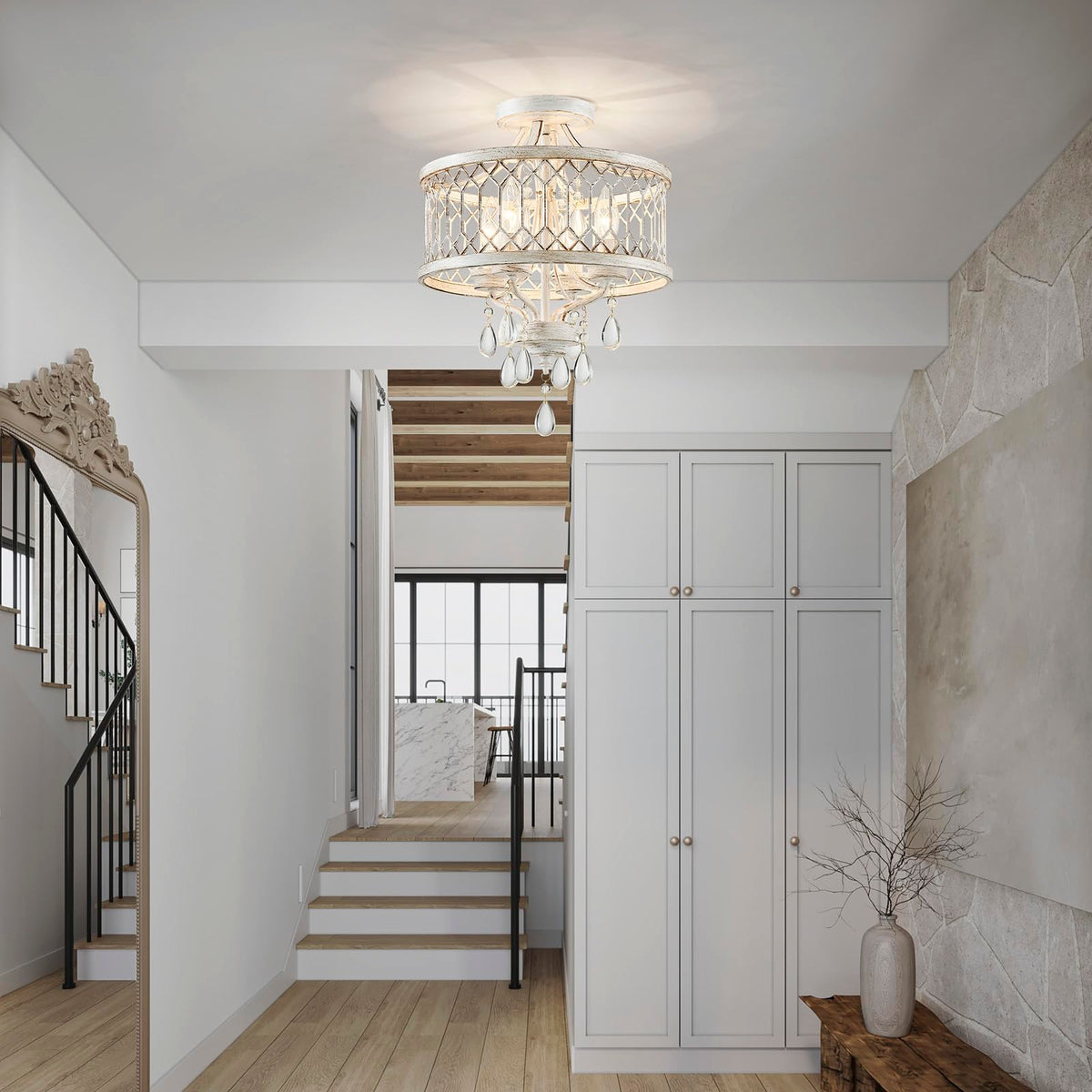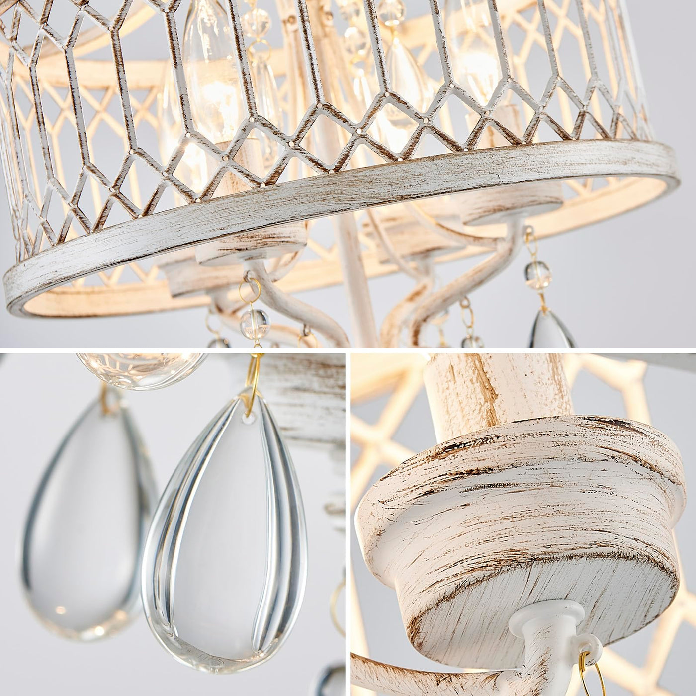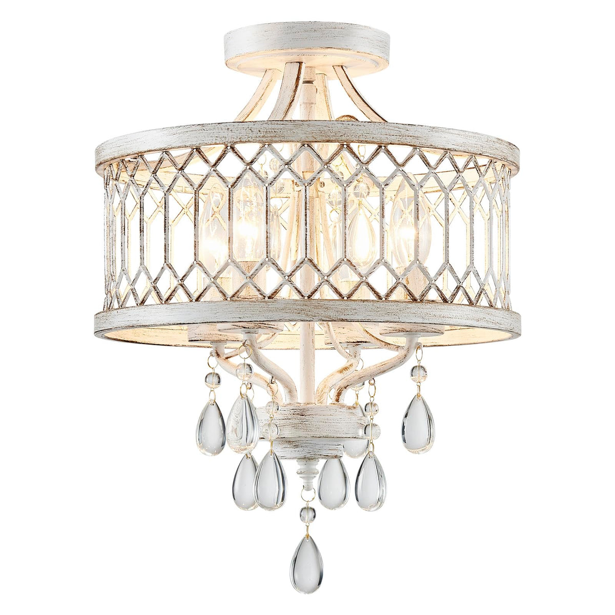 Retro Classic Design: This Farmhouse Crystal Ceiling Light Fixture Features An Impressive Geometric Design Square Grid Pattern Is Intricately Carved Into The White Drum Frame Paired With Dazzling Crystals Creating A stylish Yet Contemporary Look That Fits Effortlessly In Any Home Decor Style. Perfect Size For Any Room: With Dimensions Of 12.8L X 12.8W X 16H This Crystal Chandelier For Bedroom Offers Ample Light Without Overwhelming Your Space. Ideal For Hallway Kitchen Bathroom Entryway Bedroom Dining Room Living Room Balcony Farmhouse Foyer Offices And More. Durable & Easy-To-Maintain Light Fixture: Made From well-made Metal And Acrylic This Bedroom Light Fixture Is Built To Last. Flush Mount Crystal Chandelier Also Easy To Clean With A Simple Wipe Ensuring Long-Lasting Durability. Enjoy A Consistently well-made Modern Close To Ceiling Light Fixtures That Retains Its Original Look For Years To Come. Customizable Lighting: This Farmhouse Semi Flush Mount Ceiling Light Is Only Compatible Led Bulbs With E12 Sockets( Not Included Max 40W) Such As Incandescent Led Cfl And Halogen Bulbs. You Can Choose Different Style Bulbs And Color Temperatures To Create Whatever Atmosphere You Want To Have. Easy Installation: The Installation Is Simple There Are About 4 Steps To Install And The Whole Installation Process Takes About 20 Minutes. The Hallway Lighting Fixture Is Easy To Install And Does Not Waste Your Time. Comes With All Mounting Hardware And A Detailed Instruction Manual Making Installation Quick And Hassle-Free Even For First-Time Diyers.