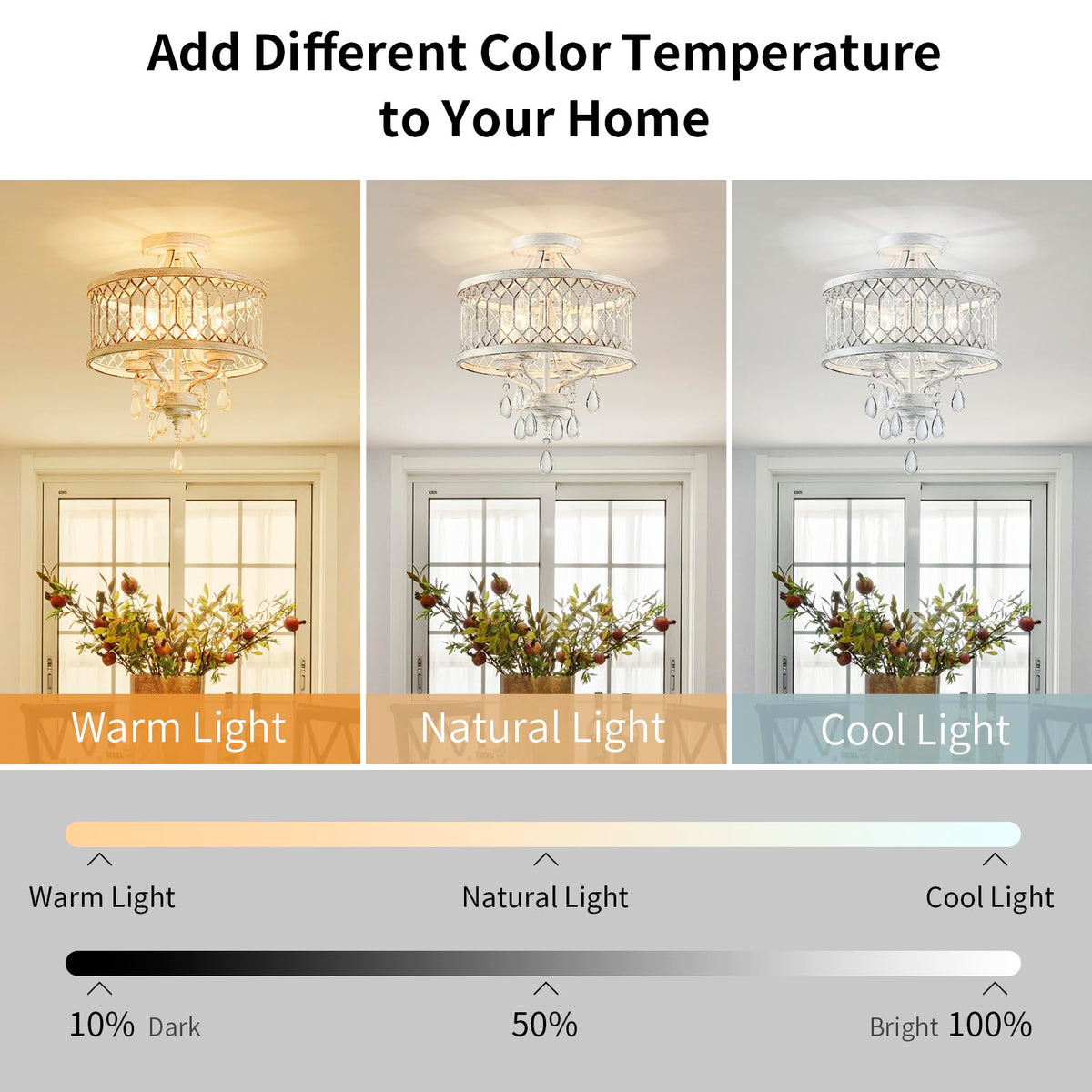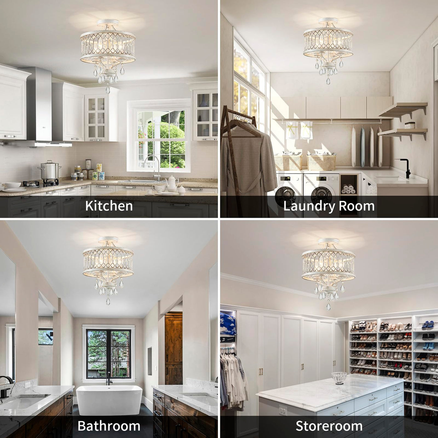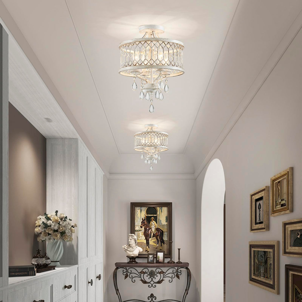Retro Classic Design: This Farmhouse Crystal Ceiling Light Fixture Features An Impressive Geometric Design Square Grid Pattern Is Intricately Carved Into The White Drum Frame Paired With Dazzling Crystals Creating A stylish Yet Contemporary Look That Fits Effortlessly In Any Home Decor Style. Perfect Size For Any Room: With Dimensions Of 12.8L X 12.8W X 16H This Crystal Chandelier For Bedroom Offers Ample Light Without Overwhelming Your Space. Ideal For Hallway Kitchen Bathroom Entryway Bedroom Dining Room Living Room Balcony Farmhouse Foyer Offices And More. Durable & Easy-To-Maintain Light Fixture: Made From well-made Metal And Acrylic This Bedroom Light Fixture Is Built To Last. Flush Mount Crystal Chandelier Also Easy To Clean With A Simple Wipe Ensuring Long-Lasting Durability. Enjoy A Consistently well-made Modern Close To Ceiling Light Fixtures That Retains Its Original Look For Years To Come. Customizable Lighting: This Farmhouse Semi Flush Mount Ceiling Light Is Only Compatible Led Bulbs With E12 Sockets( Not Included Max 40W) Such As Incandescent Led Cfl And Halogen Bulbs. You Can Choose Different Style Bulbs And Color Temperatures To Create Whatever Atmosphere You Want To Have. Easy Installation: The Installation Is Simple There Are About 4 Steps To Install And The Whole Installation Process Takes About 20 Minutes. The Hallway Lighting Fixture Is Easy To Install And Does Not Waste Your Time. Comes With All Mounting Hardware And A Detailed Instruction Manual Making Installation Quick And Hassle-Free Even For First-Time Diyers.