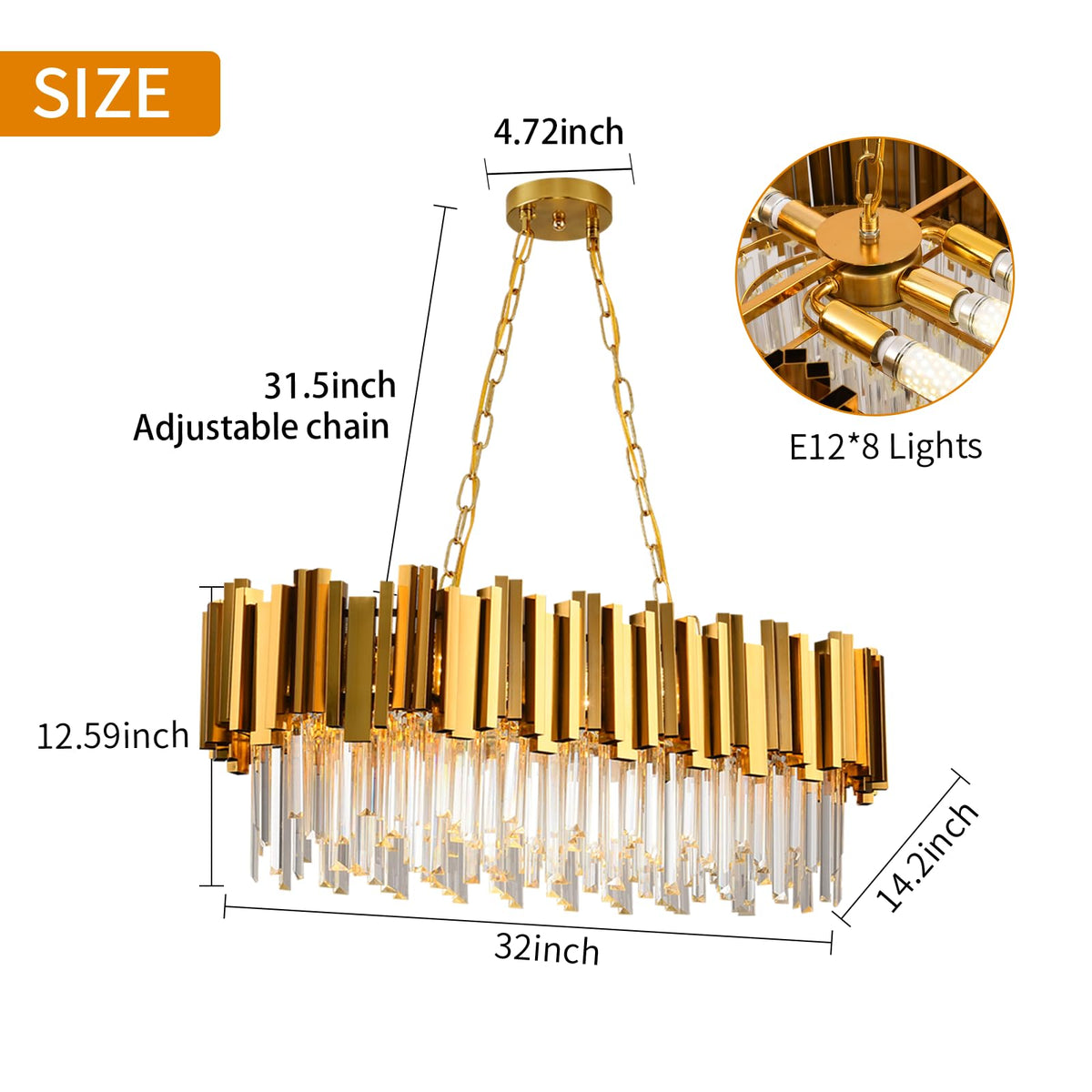 Crystal Chandeliers For Dining Room,Gold Chandeliers Modern Crystal Chandelier Pendant Light Fixture 8 Lights Contemporary Large