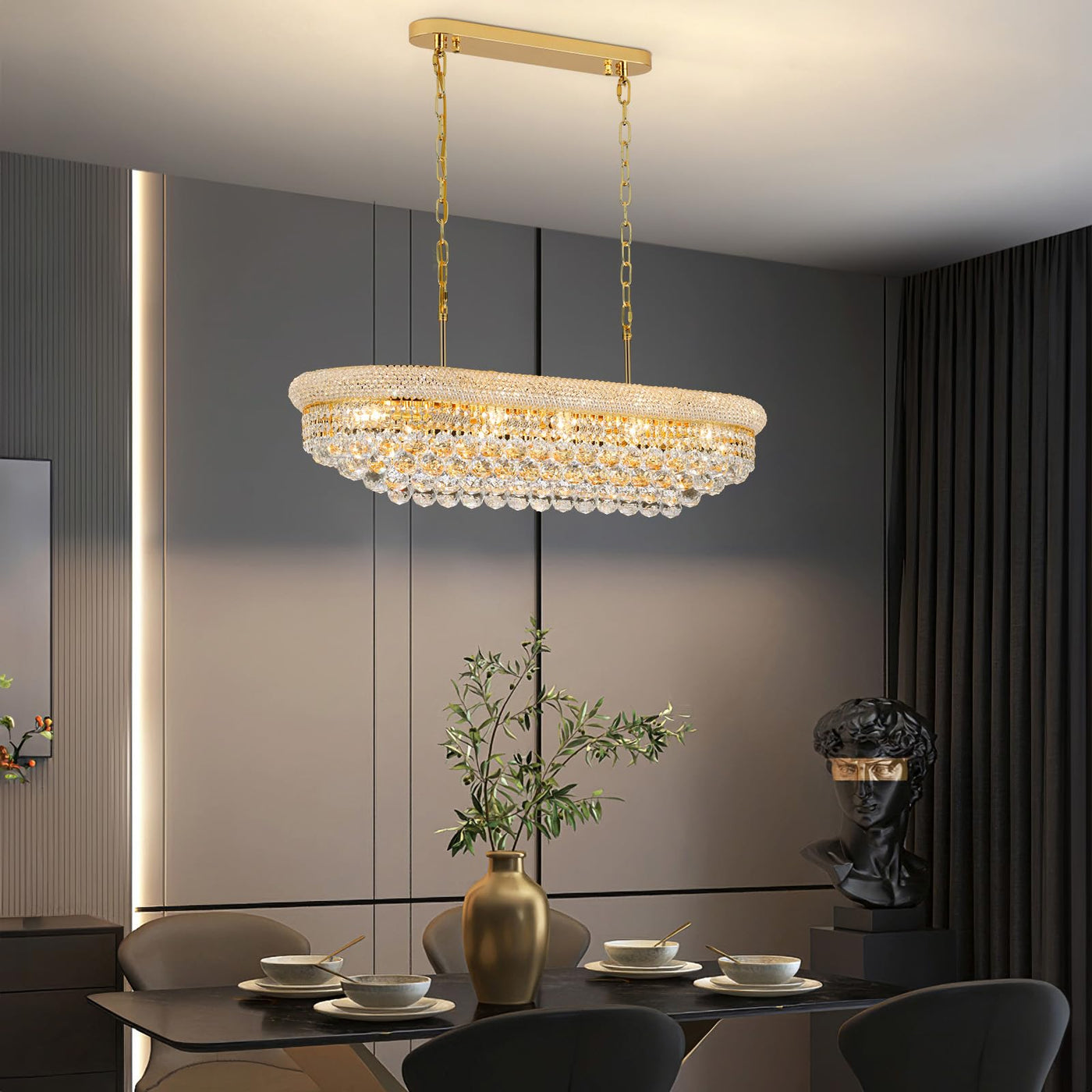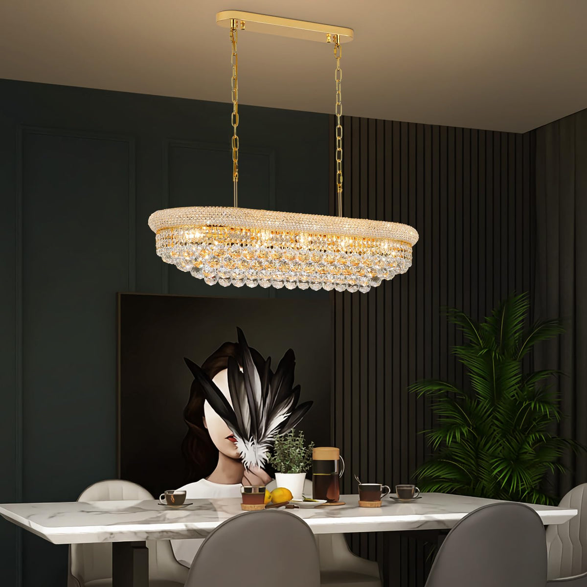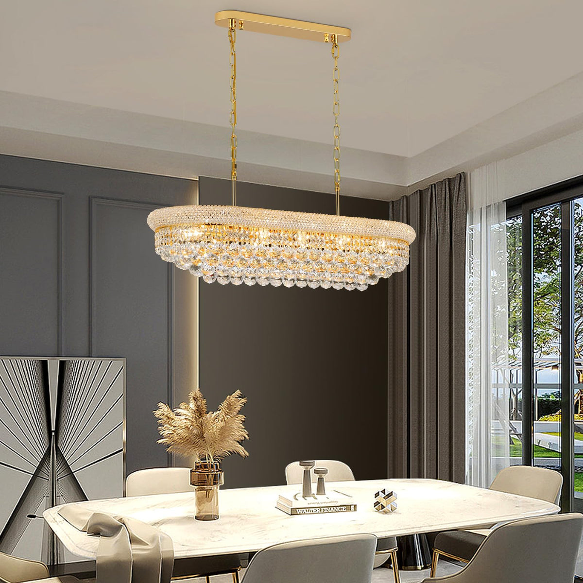 Empire Style Design:This Crystal Chandeliers For Dining Room Is Made Of K9 Crystals When You Turn On The Light ItS Like Opening A French Romantic Journey The Light Refracts A Dreamy Light Through The Crystals Creating A Noble And Charming Atmosphere Chandeliers Size:This Empire Crystal Chandeliers Has A Diameter Of 36 Inches The Whole Light Hangs At A Maximum Height Of 63 Inches A Minimum Of 18 Inches And Weighs 49 Pounds. We Have More Colors And Sizes To Choose Height Adjustable:The Package Of Dining Room Chandelier Includes Two 39.4 Inches Chandelier Chain You Can Adjust The Chain According To The Height You Need To Install It Is Very Convenient And Fits Your Ceiling Perfectly Dimmable:This stylish Crystal Chandeliers Requires 11*E12 Base Bulbs (40 Watts Maximum Power Per Bulb) If You Use Dimmable Bulbs And Dimmers This Kitchen Island Chandeliers Is Dimmable. (All Bulbs And Dimmers Are Not Included) Applicable Scene:This Gold Crystal Chandeliers Combines stylish And French Empire Style The Recommended Use Area Is 200-300 Ft2 It Can Be Used As A Dining Room Light Fixtures Over Table And It Can Also Be Used In The Living Room Kitchen Island Bar Etc Installation:This Kitchen Island Light Fixtures Package Comes With Detailed Installation Instruction You Just Need To Follow The Installation Instructions In The Package To Assemble And Hang The Crystal The Installation Process Is Very Easy To Understand Customer Service:We Provide All Customers With Satisfactory Service If You Have Any Incomprehension About The Order Or Product Or Modern Crystal Chandeliers Installation And Other Problems We Will Provide You With Satisfactory Solutions With In 24 Hours