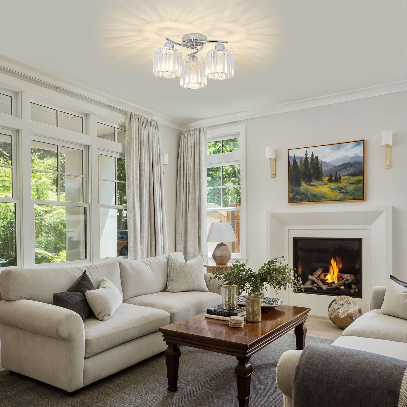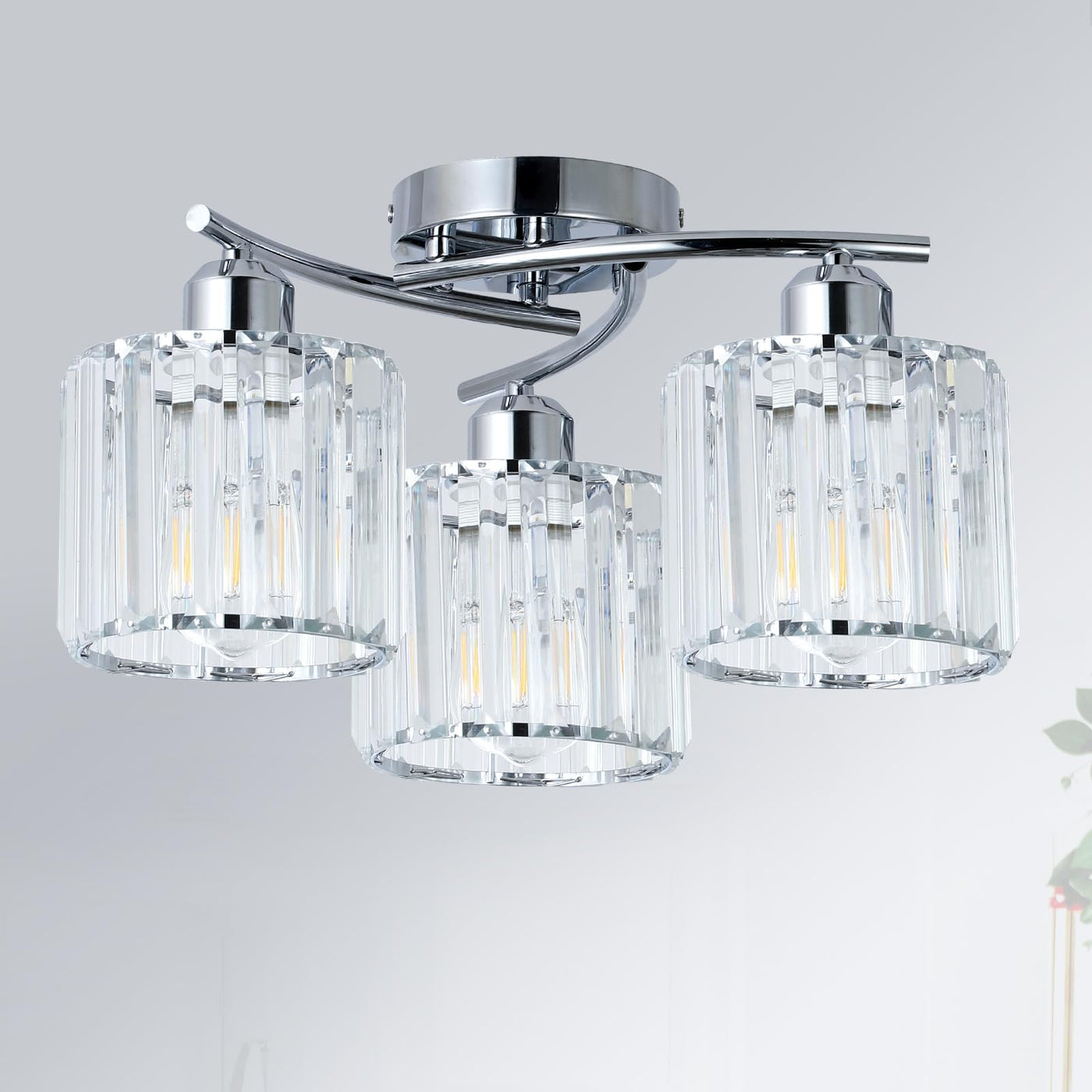 Crystal Close To Ceiling Light Fixtures 3-Light Chrome Modern Semi Flush Mount Ceiling Light Kitchen Light Fixture With Clear Crystal Shades Hallway Lighting Fixture For Entryway Bedroom Bathroom