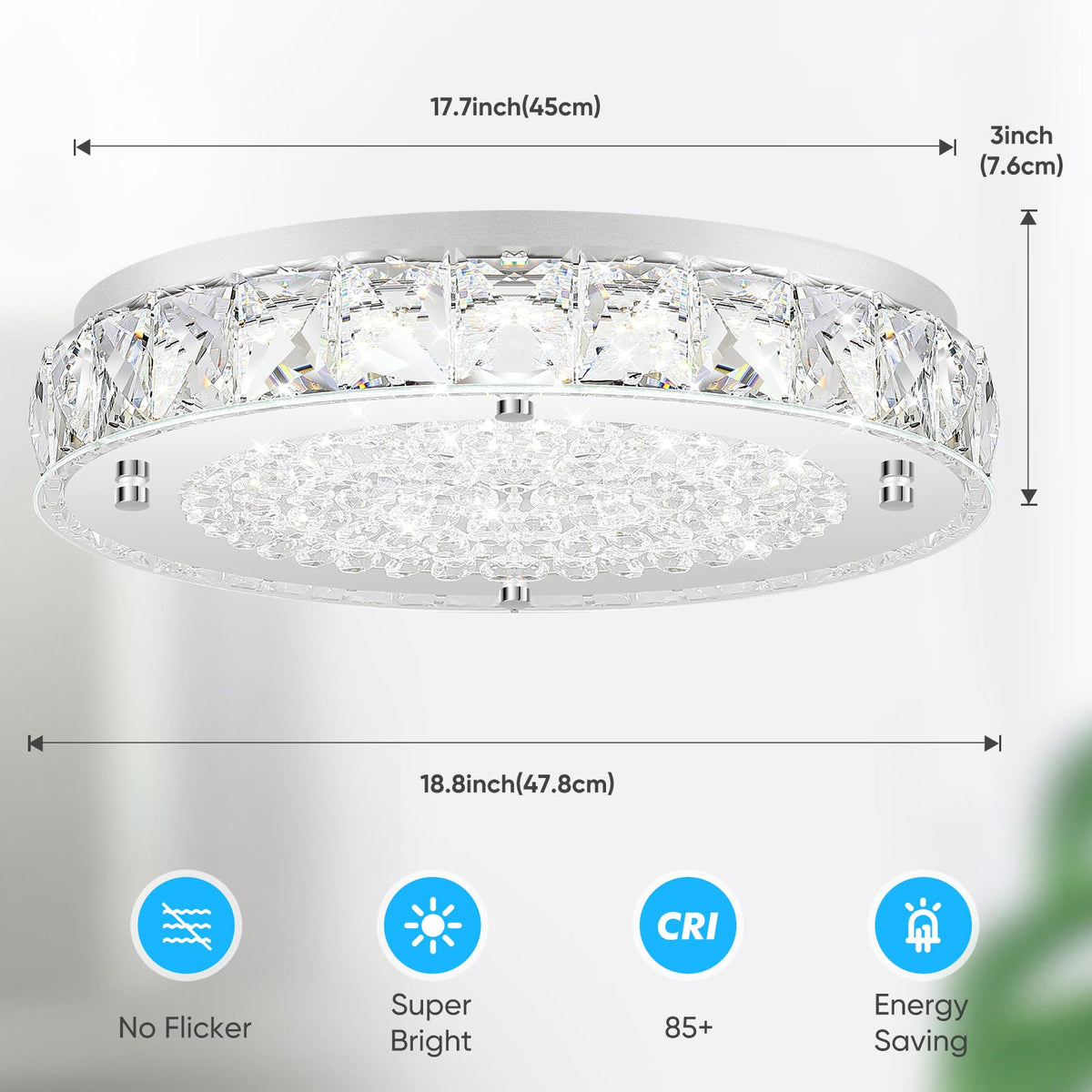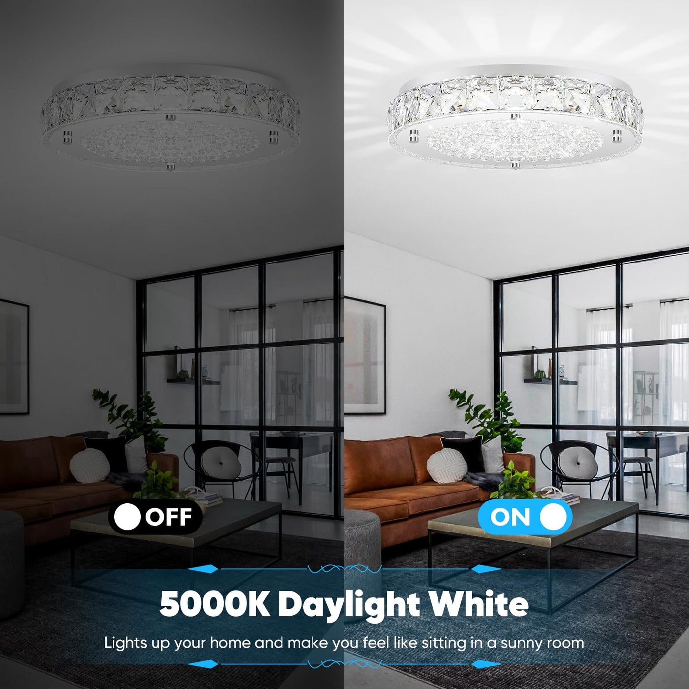 Crystal Flush Mount Ceiling Light Led Chandeliers Light Fixture 19-Inch 5000K Daylight White Super Bright 5000Lm Dimmable Farmhouse Kitchen Lighting Modern Ceiling Lamp For Bedroom Bathroom Nursery