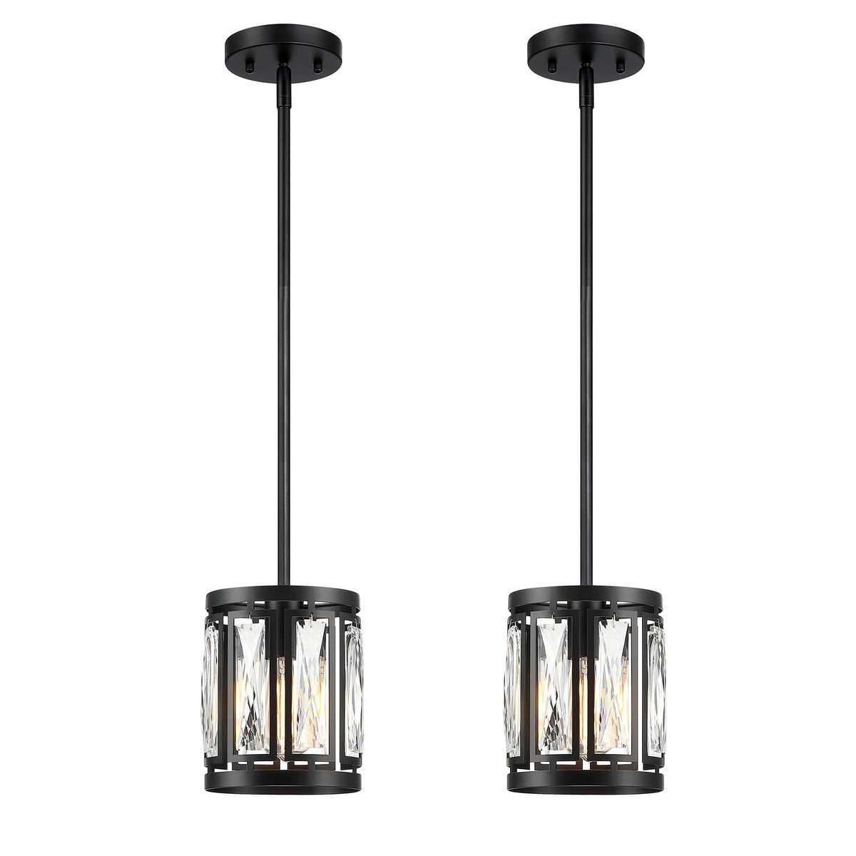 2-Pack Crystal Pendant Lighting Fixture, Metal Frame And High Quality Transparent Crystals. Suitable For Home And Shops. Matte Black Finish