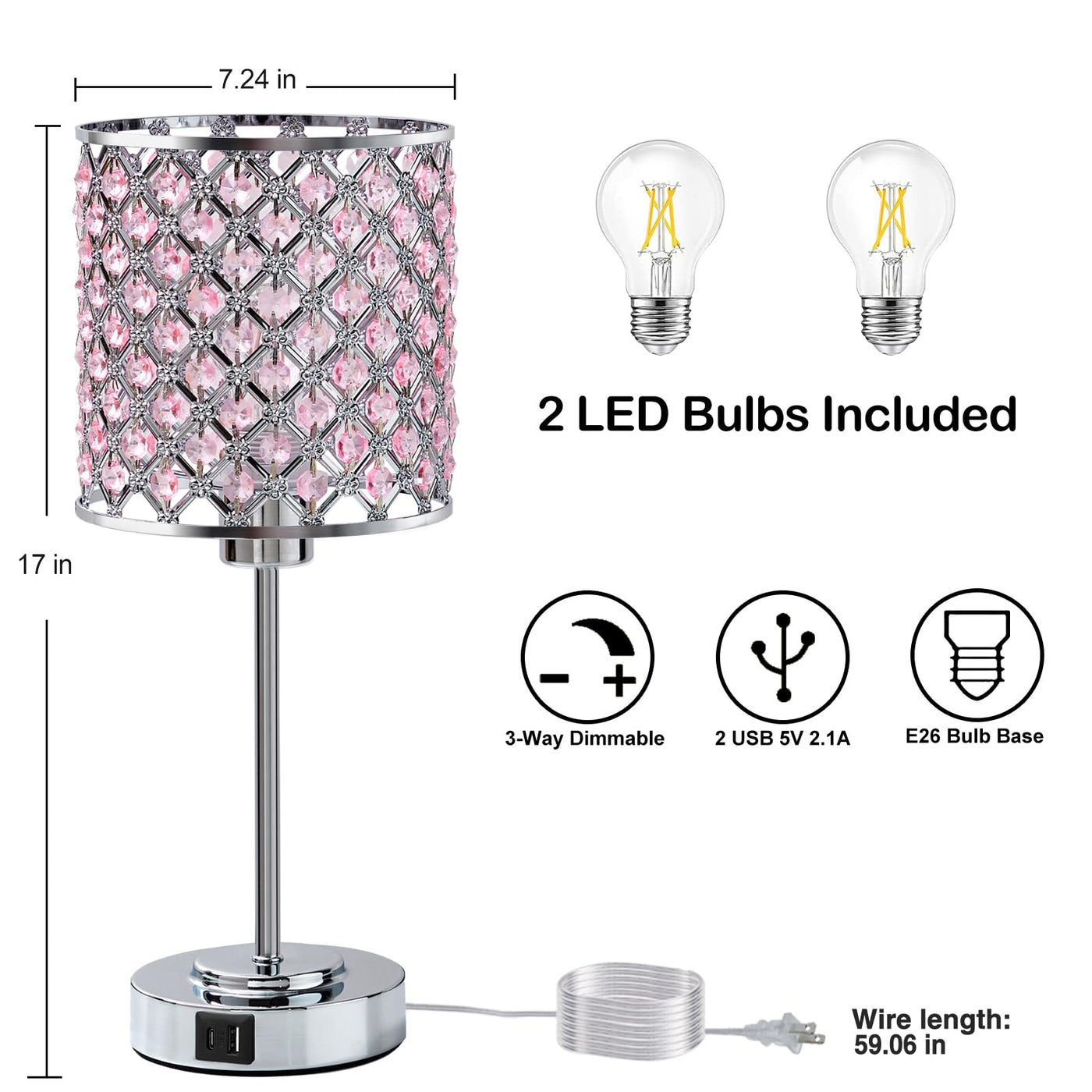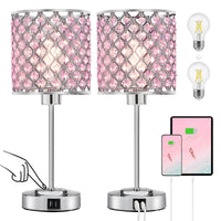 Crystal Table & Bedside 3-Way Dimmable Touch Nightstand Pink Accent Lamp - Usb Charge, Ideal For Bedroom, Living Room & Office