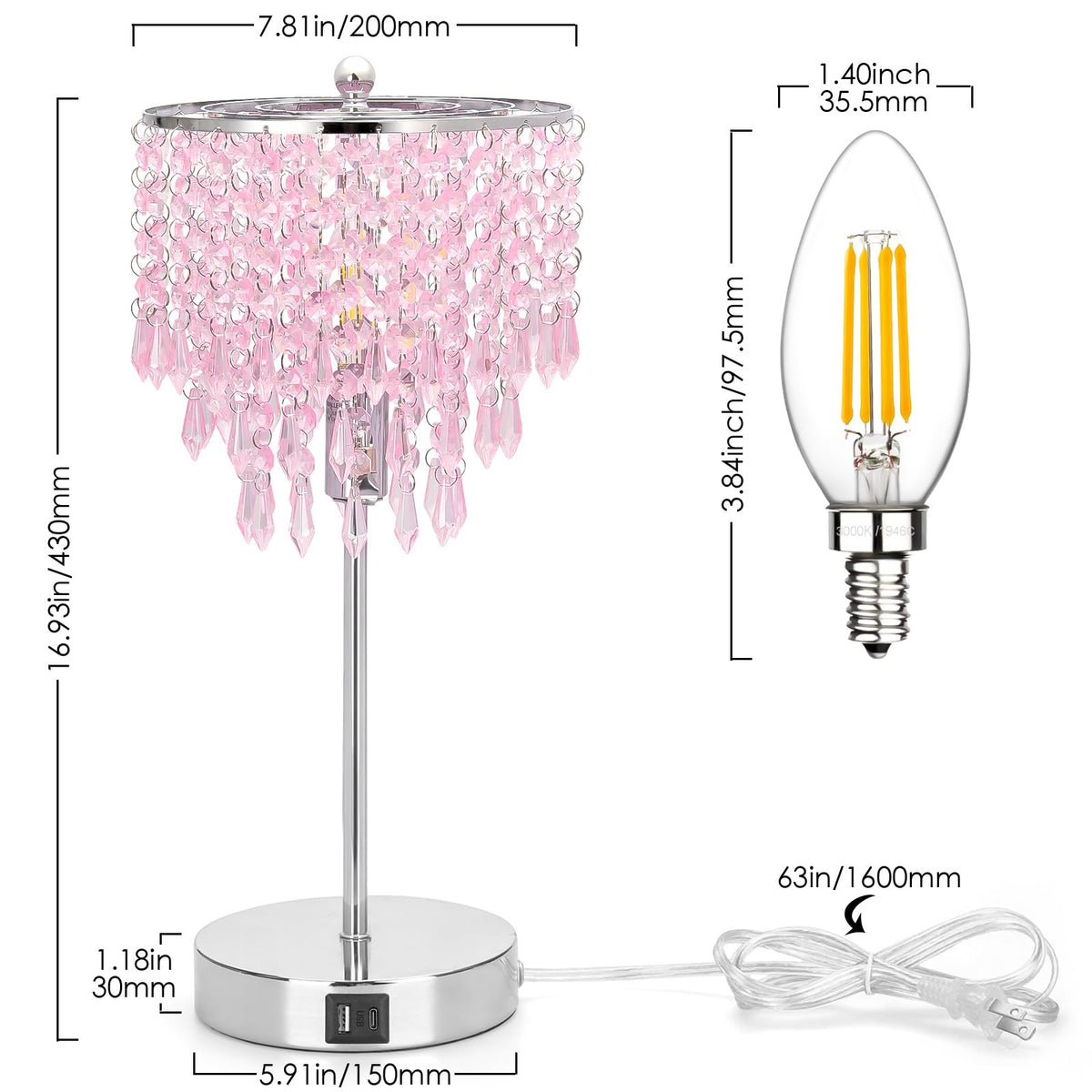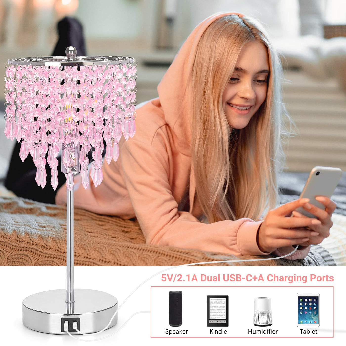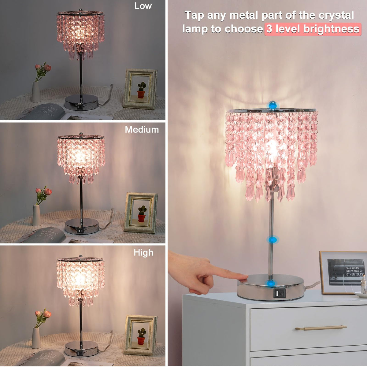 Come With Dual Usb Ports, The 3 Way Dimmable Table Lamp Allows You To Charge Two Devices At The Same Time. Featuring The Touch Sensitive Function, The Pink Crystal Table Lamp Can Be Controlled By All Ages Of People By Simply Tapping Any Part Of The Metal Base, .