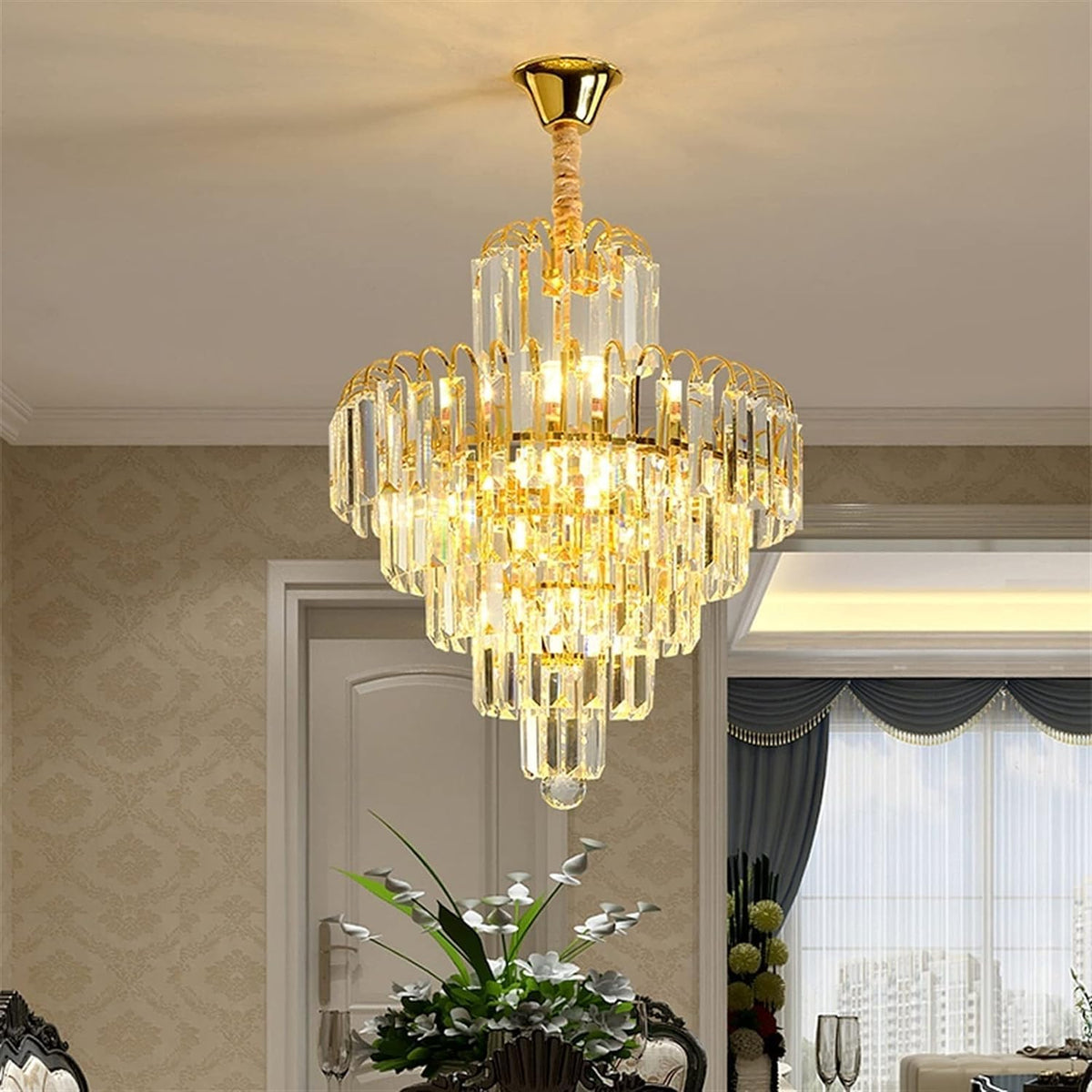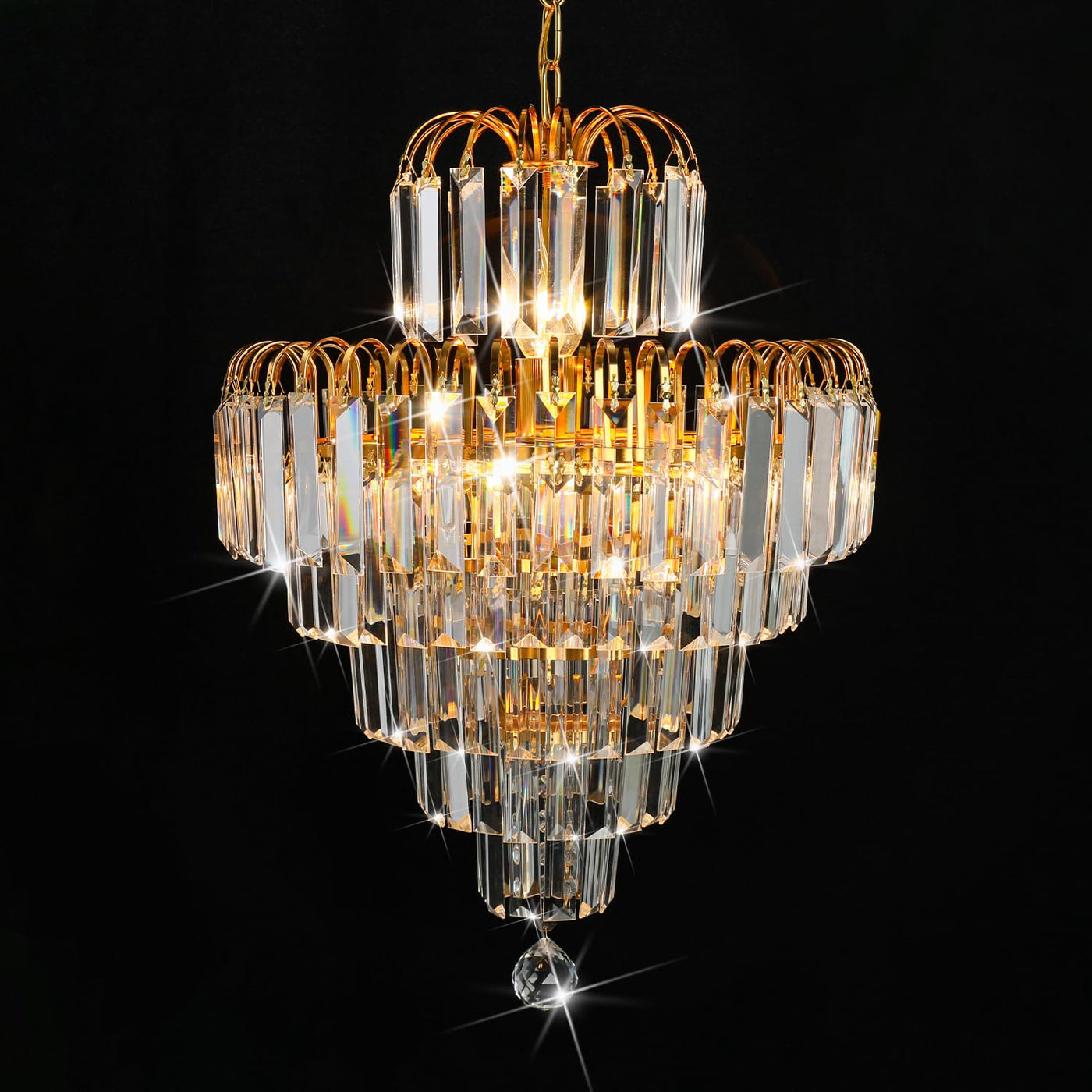 - **Stunning Design**: Crafted with a dazzling 6-layer crystal shade, this chandelier adds a touch of glamour to any room. Its gold finish and contemporary style make it an eye-catching centerpiece for dining rooms, entryways, or living areas.