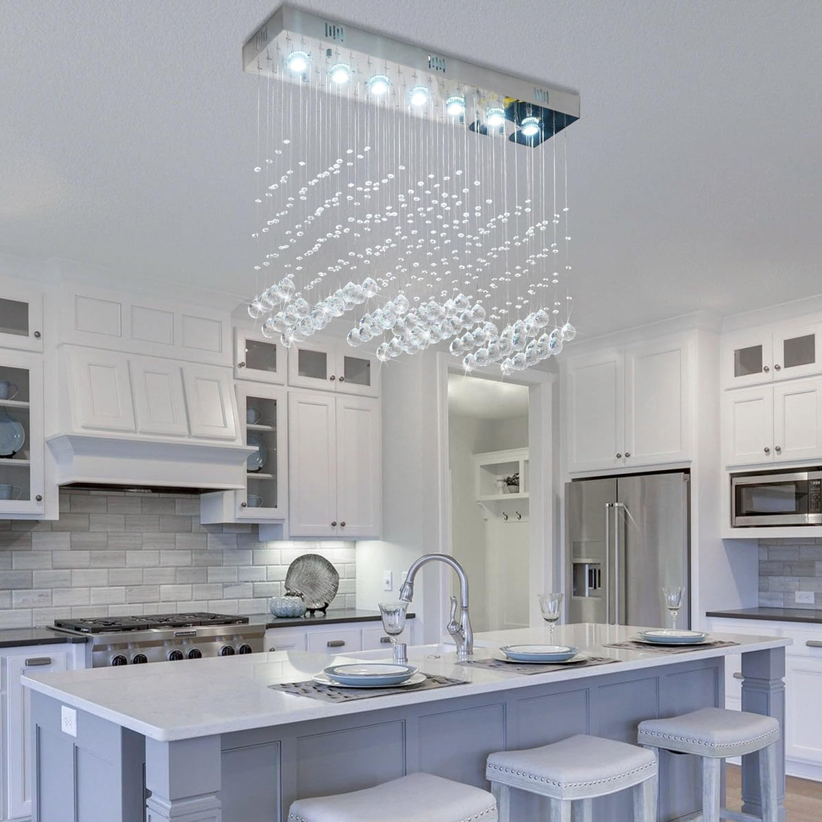 Crystop 7-Light Rectangular Chandelier, Silver Crystal Pendant Light For Dining Room & Kitchen