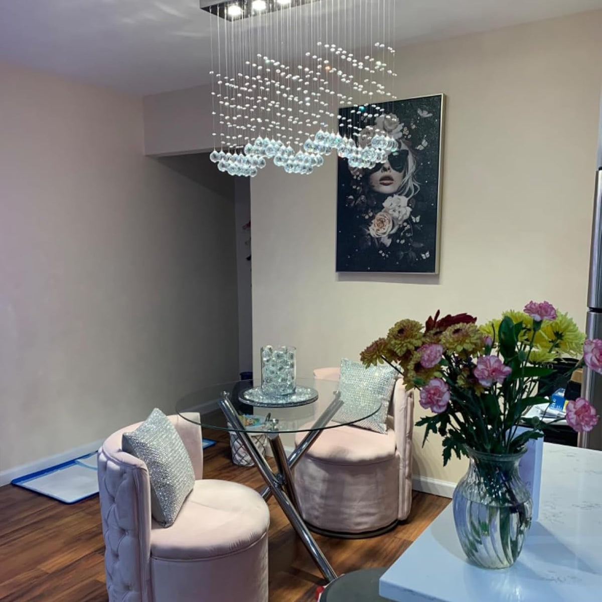 - **Luxury Wave Raindrop Design**: Features a polished chrome finish with exquisite K9 octagon crystal beads and faceted diamond cut crystal balls, creating a glamorous ambiance that sparkles beautifully in any setting.