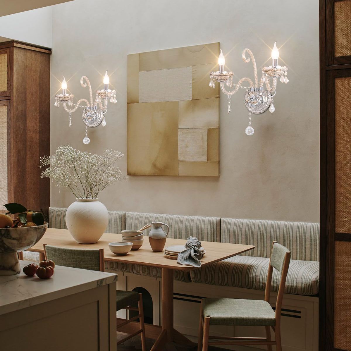 Crystop Elegant Classic Crystal Wall Sconce, Candle Sconces Wall Decor Set Of 2 Perfect Hang On The Wall For Living Room Bathroo