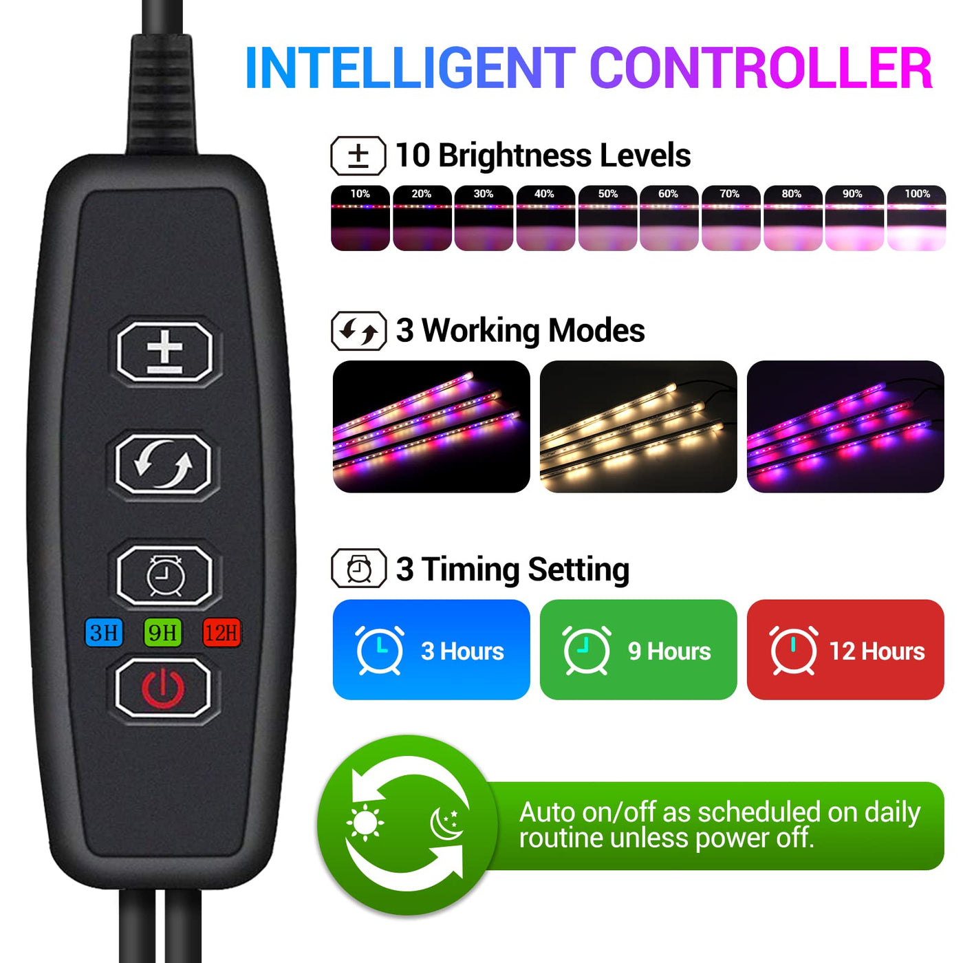 - **Auto Cycle Timer:** Set your grow light to automatically turn on/off for 3, 9, or 12 hours, ensuring your plants receive consistent lighting, even when you're busy or away.