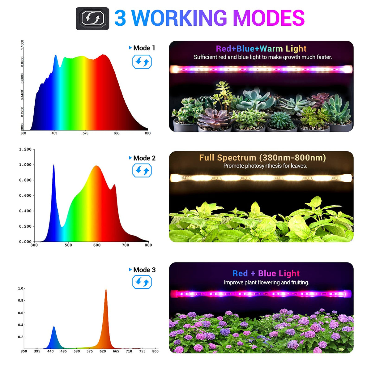 - **3 Working Modes:** Adapt to your plants' needs with three lighting modes: