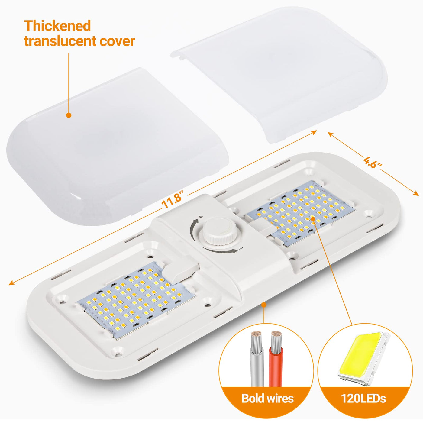 CT CAPETRONIX 1700LM RV Interior Lights, Dimmable 12V LED Ceiling Dome Light, 3 Color Options, 2-Pack for RV/Camper/Trailer/Boat