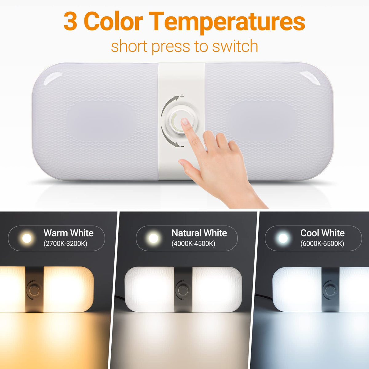 Three Color Temperatures: Choose between warm, cool, and natural light to create the ideal environment.