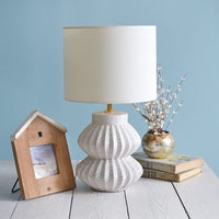 Q: How do I care for and maintain this ceramic lamp?A: To maintain the CTW 680610 Scalloped Ceramic Tabletop Lamp, simply wipe it with a soft, damp cloth to remove dust and avoid using harsh chemicals that could damage the finish.