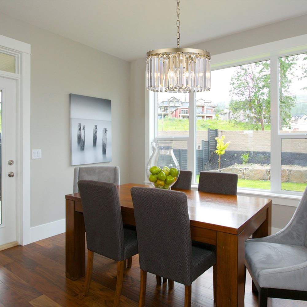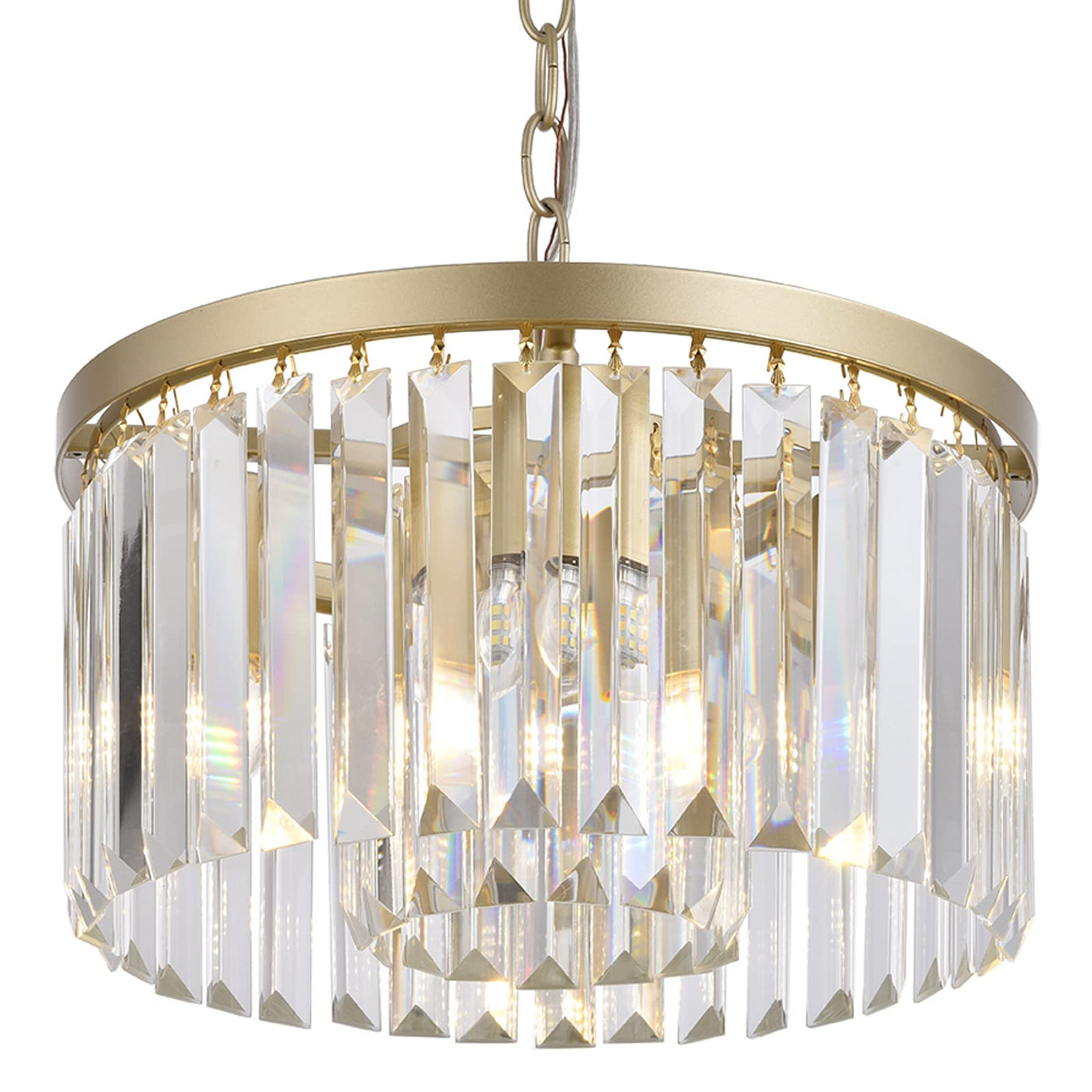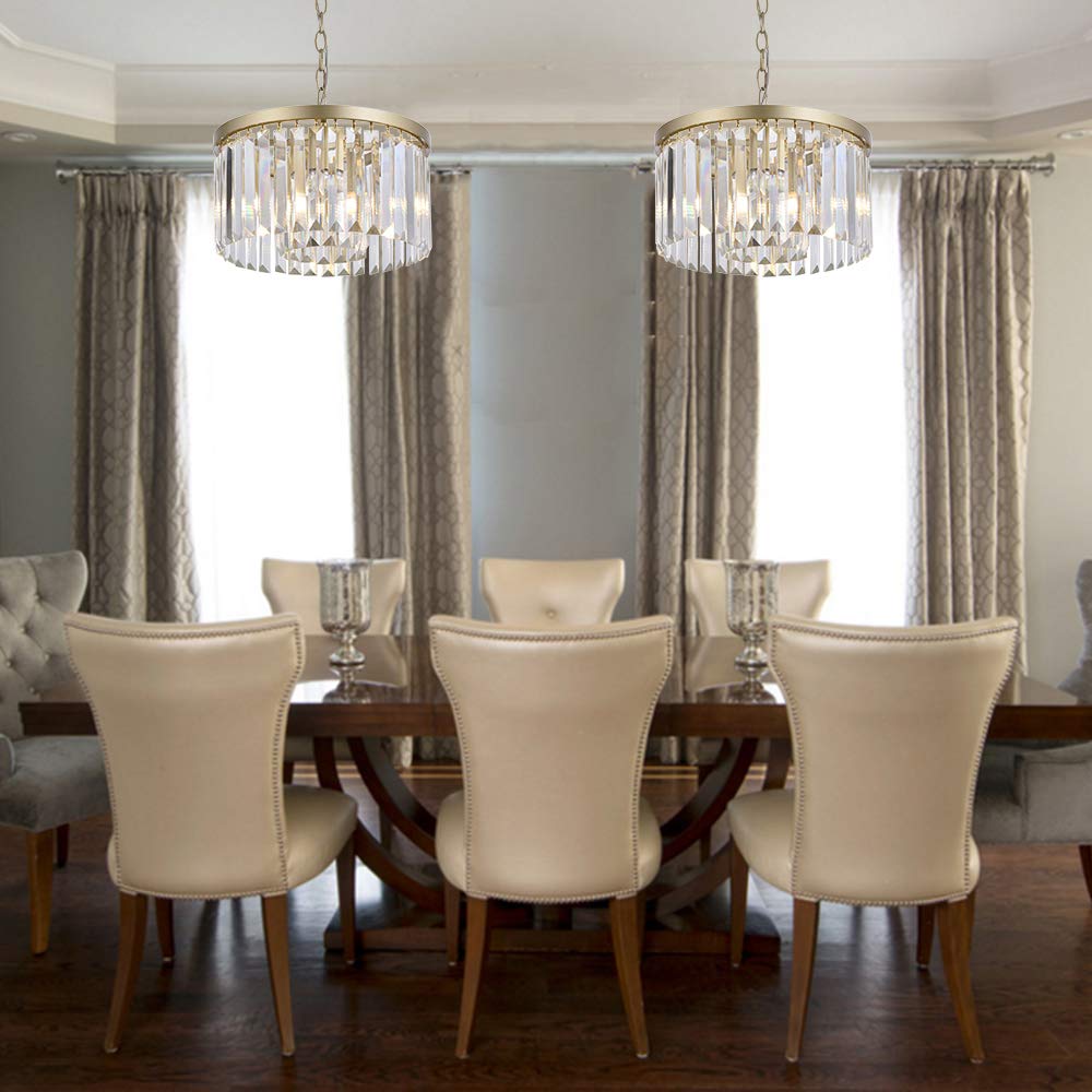 Cuaulans D13'' Gold Crystal Chandelier, Modern K9 Small Crystal Chandeliers, Round 4 Lights Cord Adjustable Hanging Ceiling Ligh