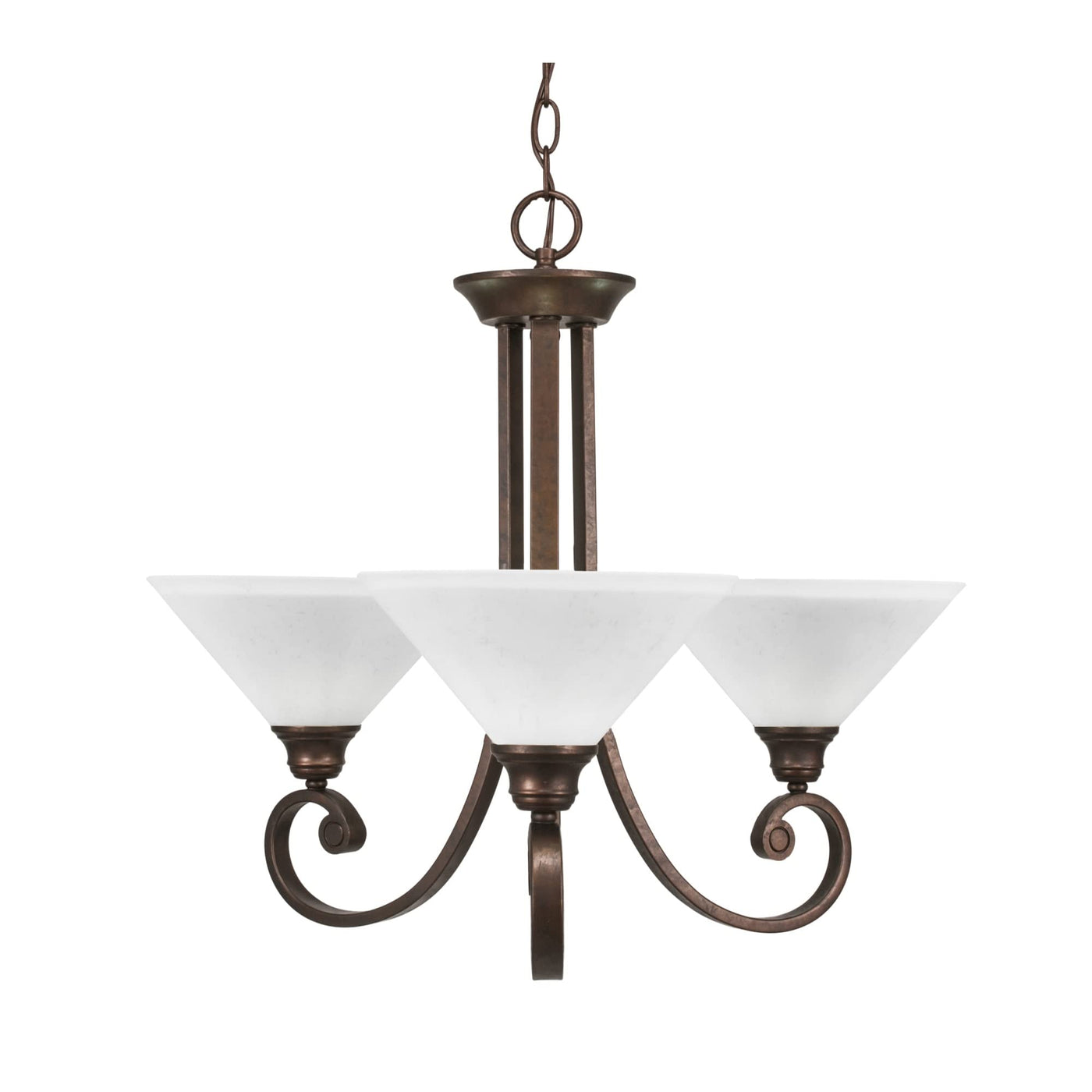 Toltec Lighting 253-BRZ-314 Curl Three Light Chandelier Chandelier Bronze / Dark Traditional White. Please refer to the datasheet for all product specifications. Toltec Lighting MPN: 253-BRZ-314