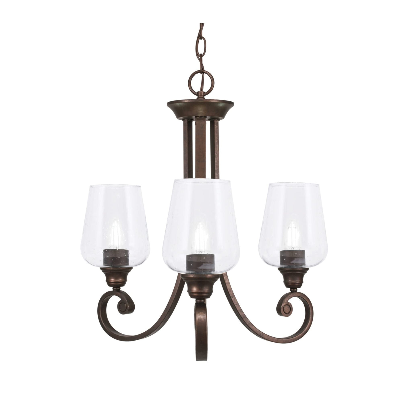 Toltec Lighting 253-BRZ-210 Curl Three Light Chandelier Chandelier Bronze / Dark Traditional Clear. Please refer to the datasheet for all product specifications. Toltec Lighting MPN: 253-BRZ-210