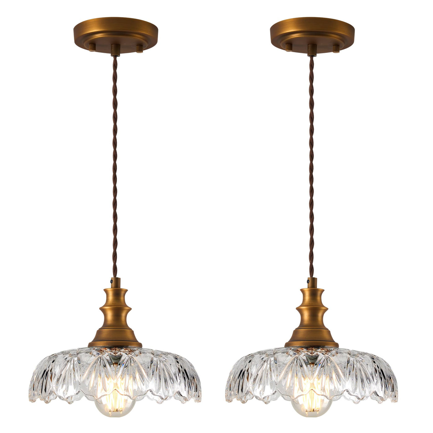 Curreyfols Set Of 2 Pack Vintage Chandelier/Light Fixtures/Glass Flower Pendant Lights Antique Brass/Gold Finish Farmhouse Moder