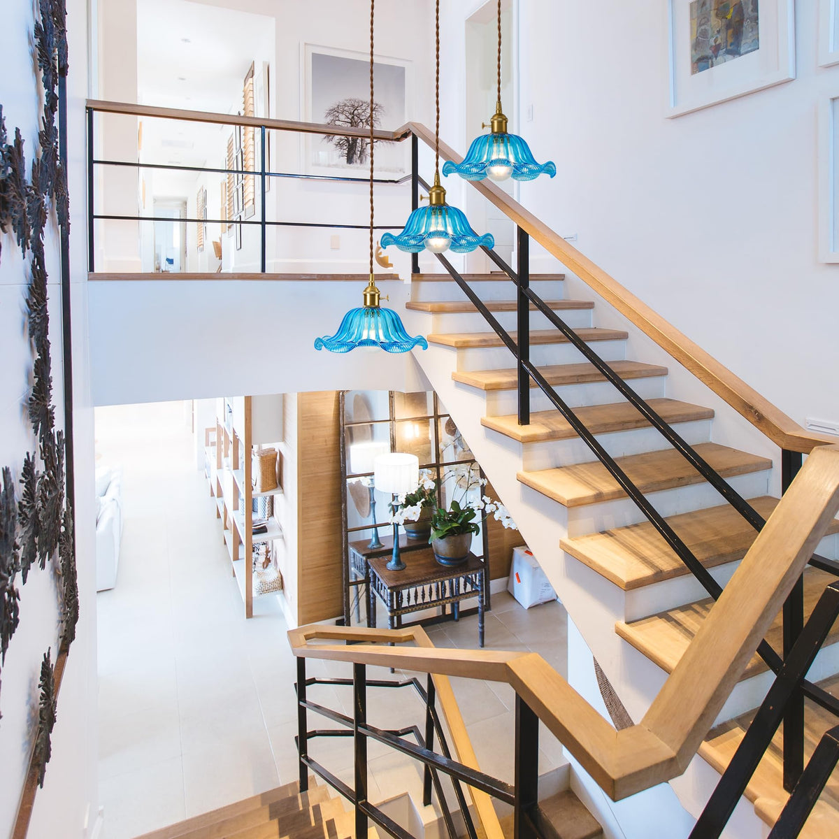 Q: Can I use this pendant light in my bathroom or bedroom?A: Absolutely! The Curreyfols Blue Glass Pendant Light is versatile and can be used in various settings, including the kitchen, dining room, bathroom, bedroom, and living room. Its stylish design also makes it suitable for entryways, hallways, and coffee shops.