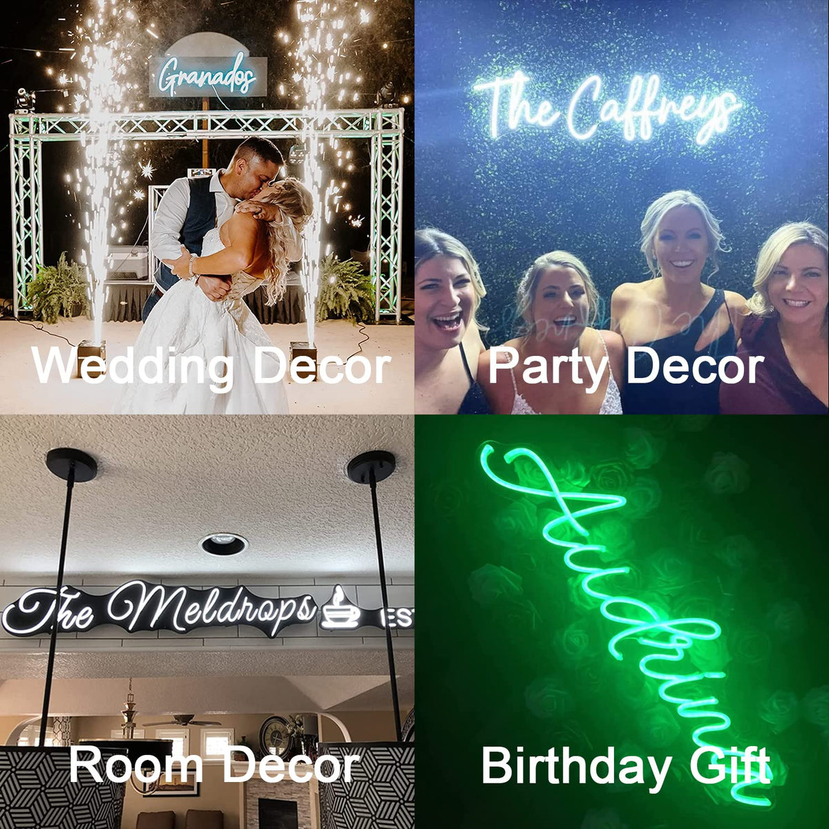 Q: What are the ideal applications for this custom neon sign?A: This neon sign is perfect for various occasions, including weddings, birthdays, graduations, and holidays. It can also be used as home decor, personalized gifts, and business signage for bars, salons, and shops.