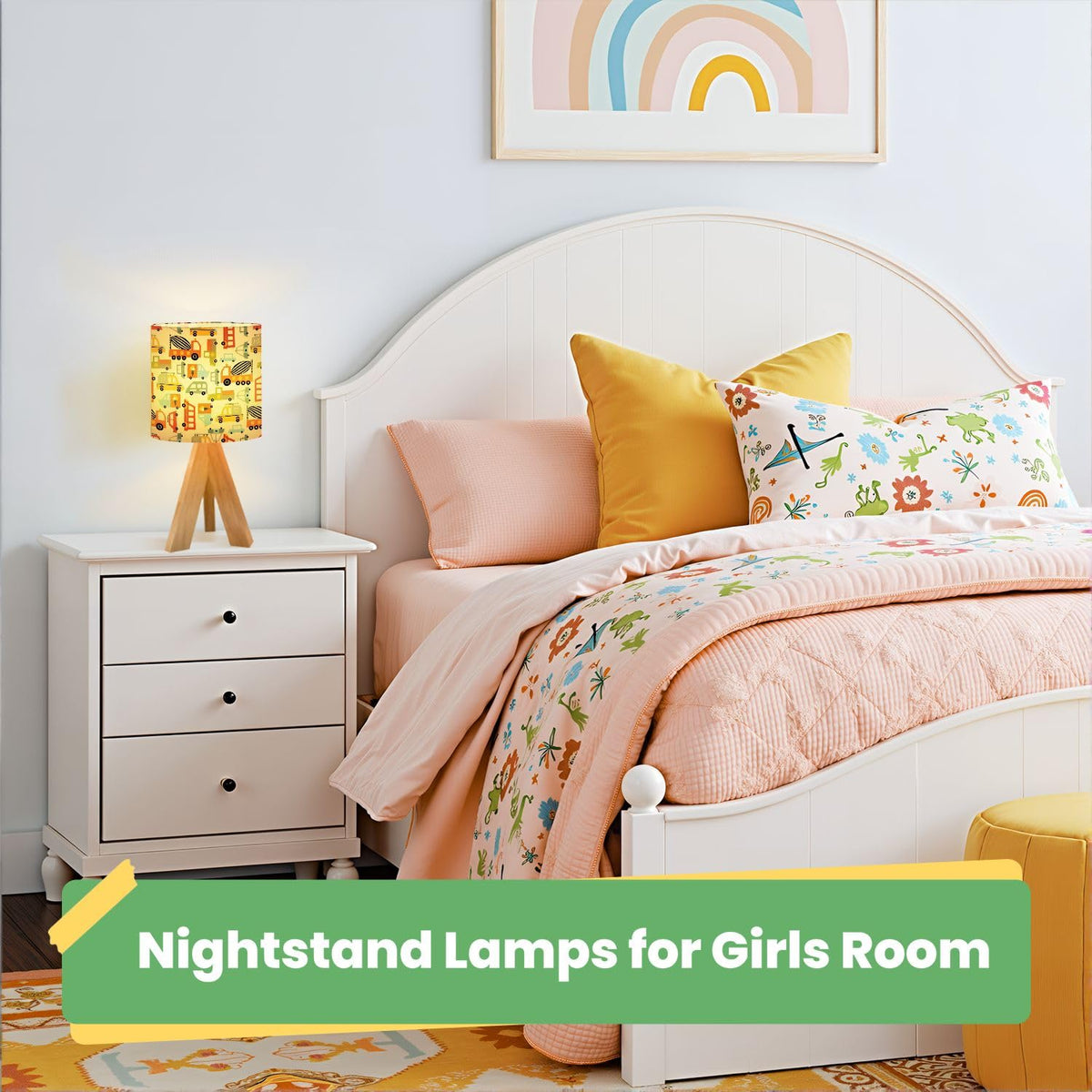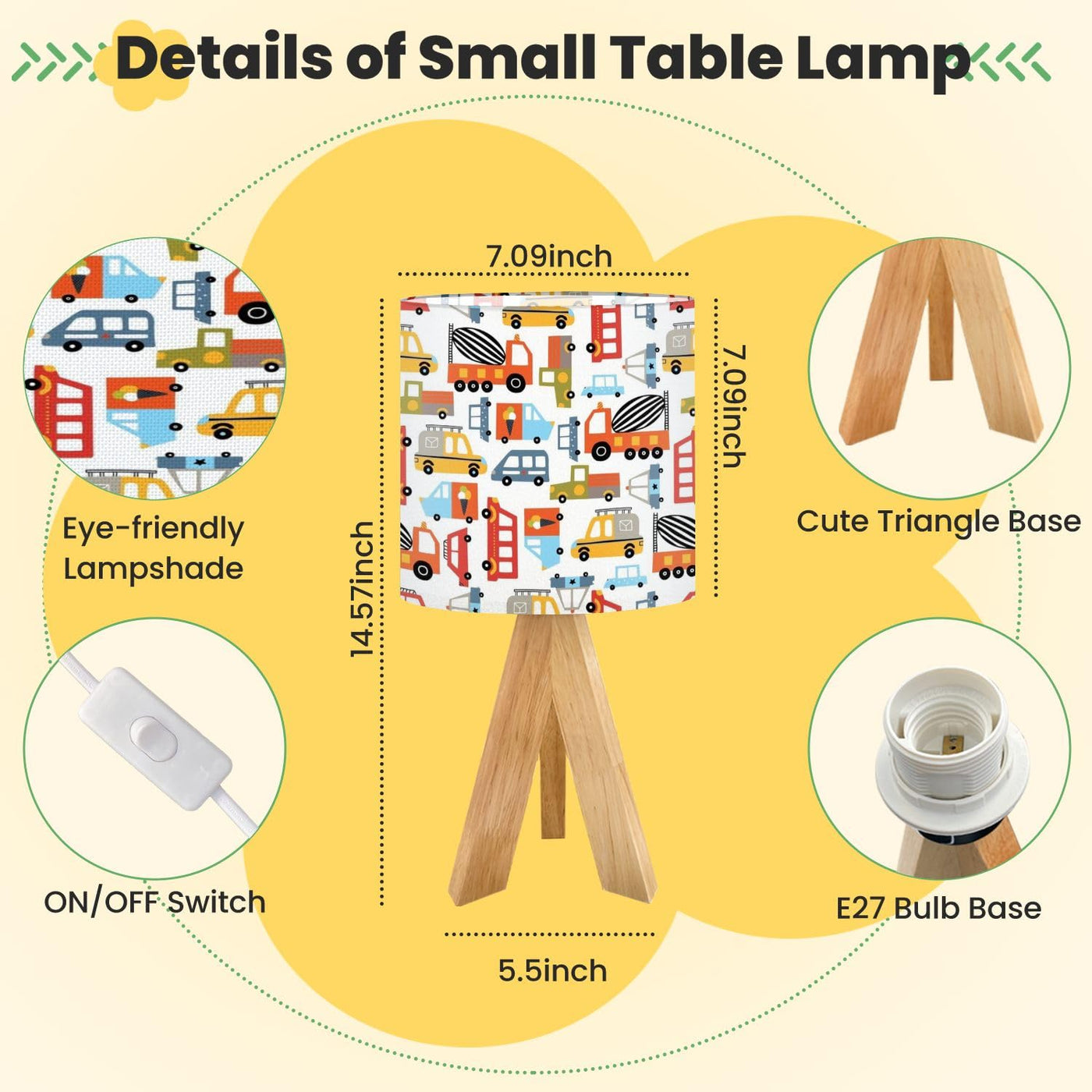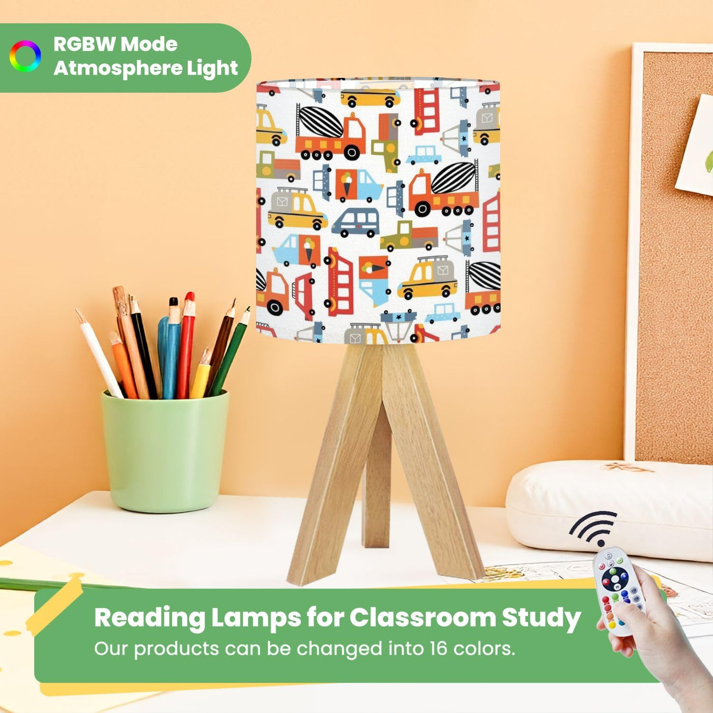 Cute Kids Bedside Desk Table Lamp Cute Kids Seamless Pattern Cars White Can Be Used Textile Industry Children Nightstand Lamp, T