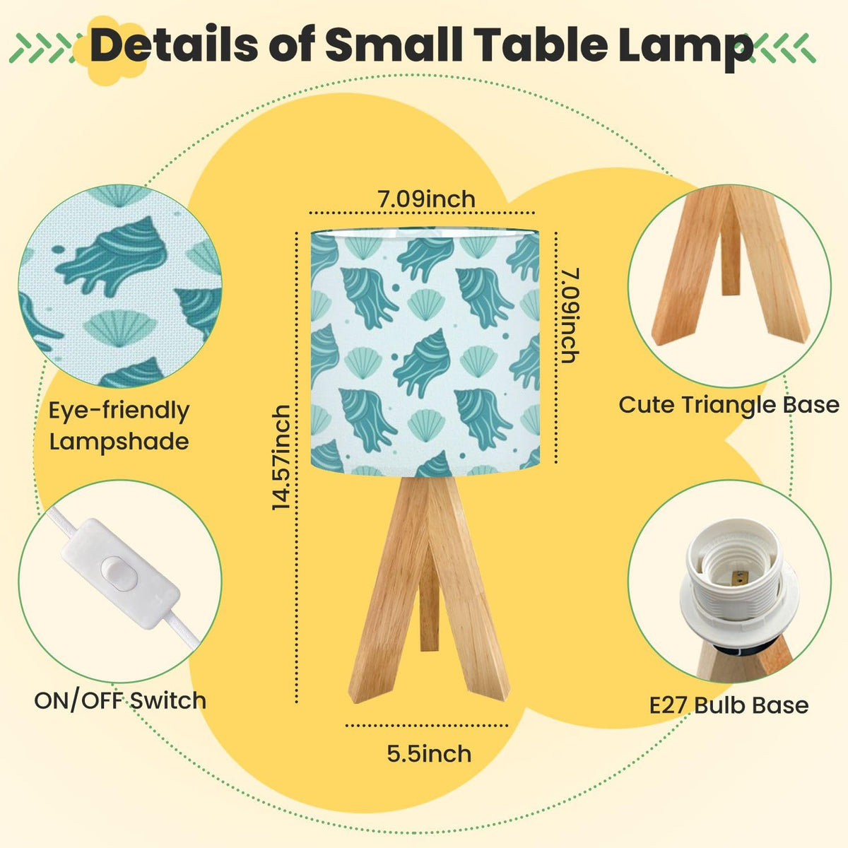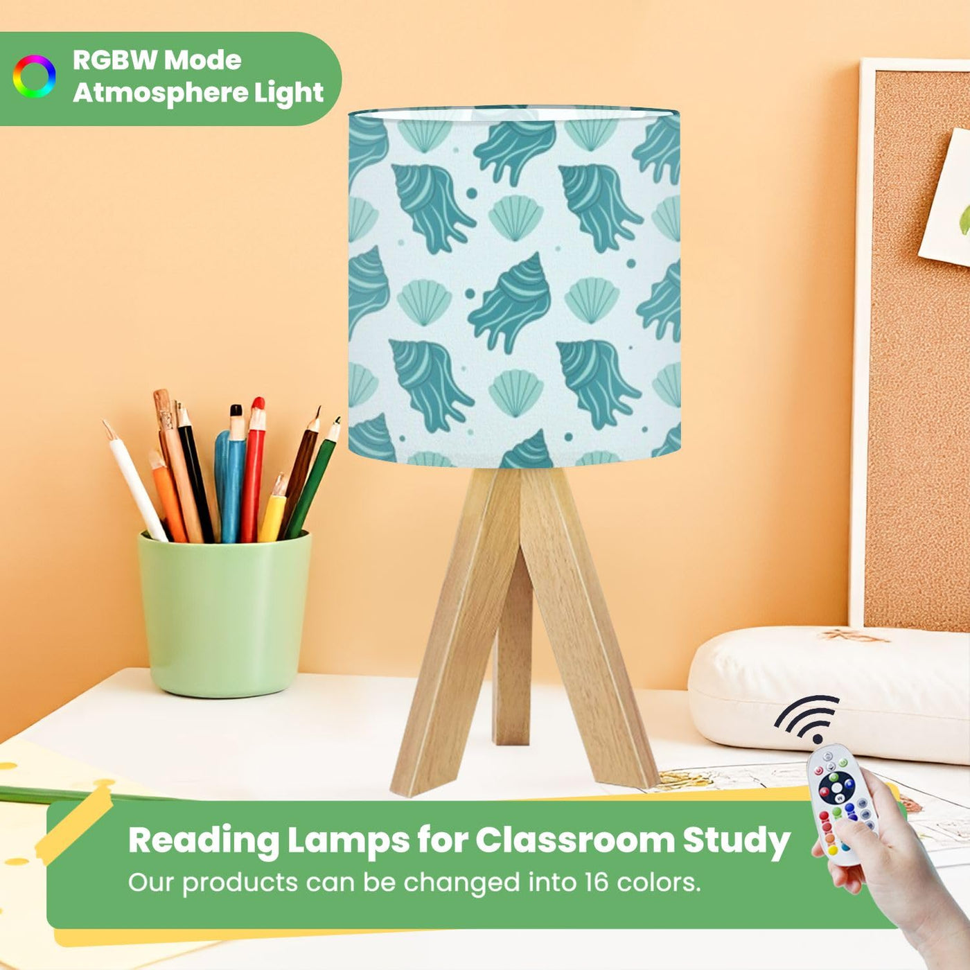 Cute Kids Bedside Desk Table Lamp Sea Blue Shells Seamless Pattern Fashionable Stylish Pattern Different Children Nightstand Lam