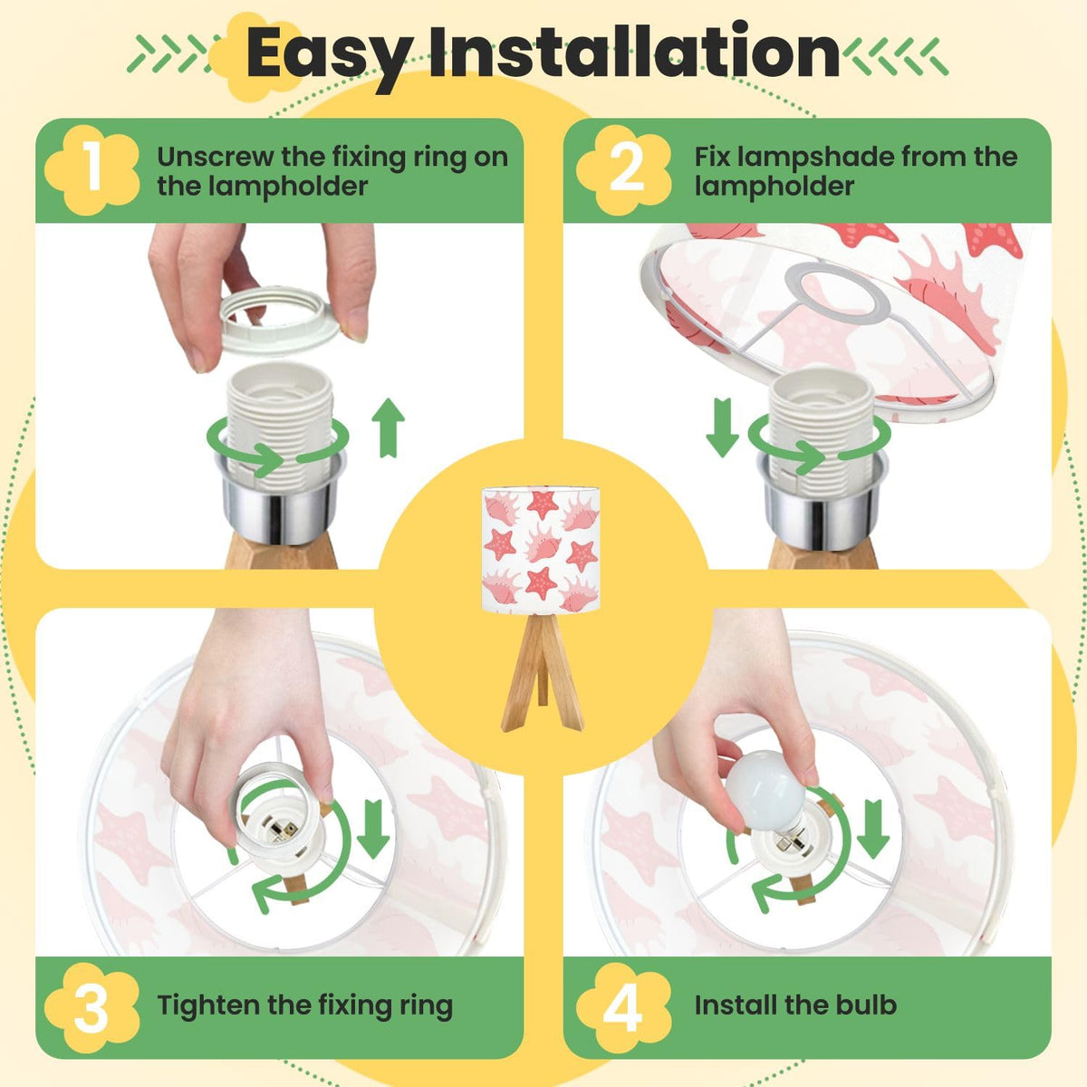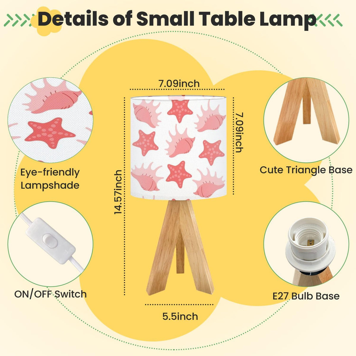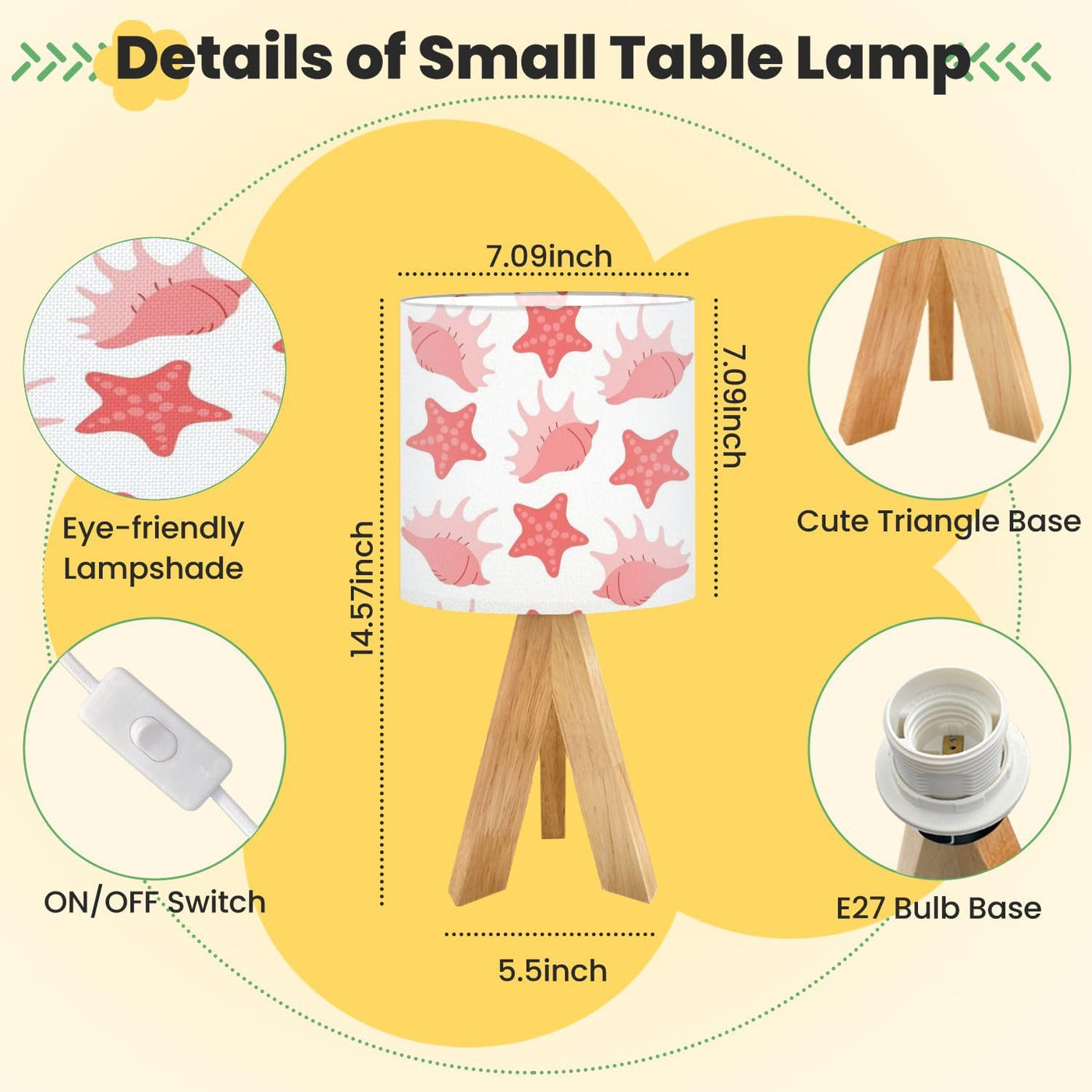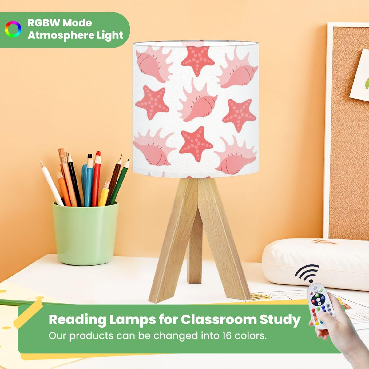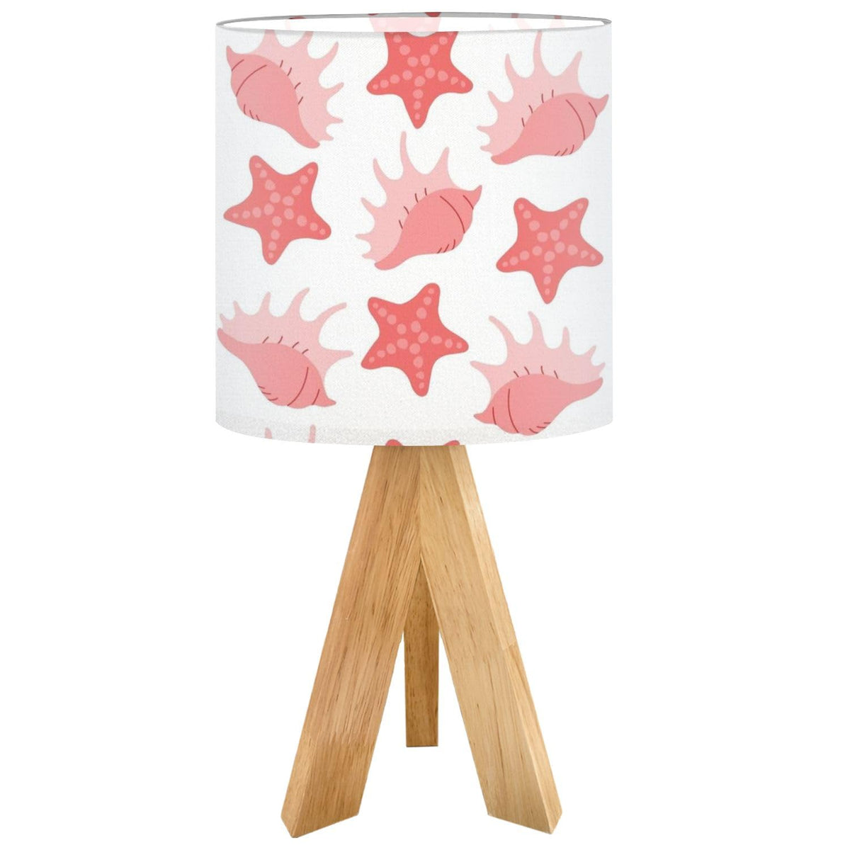 Cute Kids Bedside Desk Table Lamp Sea Shells Star Fish Seamless Pattern For Packaging Decoration Children Nightstand Lamp, Tripo