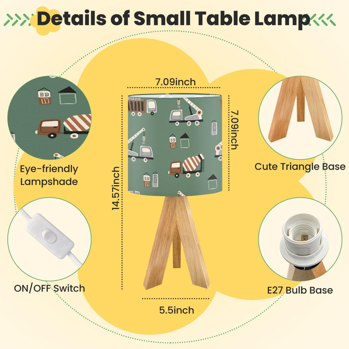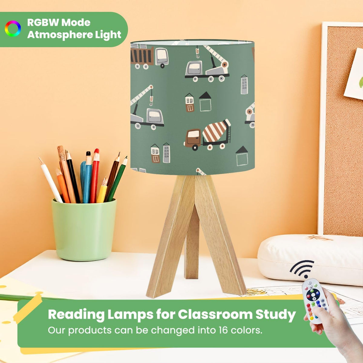 Cute Kids Bedside Desk Table Lamp Seamless Pattern Cute Cement Mixers Trucks Cranes For Fabric Textile Children Nightstand Lamp,