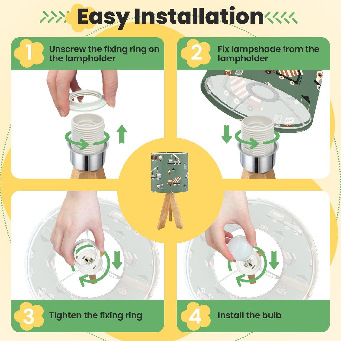 Specifications:- Lampshade Color: White Linen, the actual color may be more vivid than on the display, but it does not affect your choice.- Input Voltage: 110V, US Plug- Material: Wooden Base, Fabric Lampshade- Switch Type: Push Button Switch on Power Cord- 1 Table Lamp with E27 Bulb Base- 3W LED Bulb Included- Remote Control Without Batteries. Instruction Manual IncludedIts versatile design blends seamlessly with any interior style and fits in any room you want to illuminate.Charming Gift for Your Loved OnesThoughtful Gift: Mood Lamp for Relaxation and Meditation. With a lovely design and beautifully decorated lamp post, this lamp is a delightful and thoughtful gift for family or friends. Whether it's a birthday, Thanksgiving, Christmas, or any other celebration, this lamp will bring joy and charm to their lives. We are a reputable shop that only produces quality products you can trust. Note:1.Please pay attention to the size specifications when browsing to ensure it will fit your desired space perfectly.2. Please note that there is an on/off switch on the power cord, not a touch switch. It only controls the on/off light, not the color-changing function of the light. If you want to change the color, you can use the remote control.3. To prevent water damage, keep the light away from water sources to ensure a safe and enjoyable experience. Please use a dry cloth to clean the table lamp.