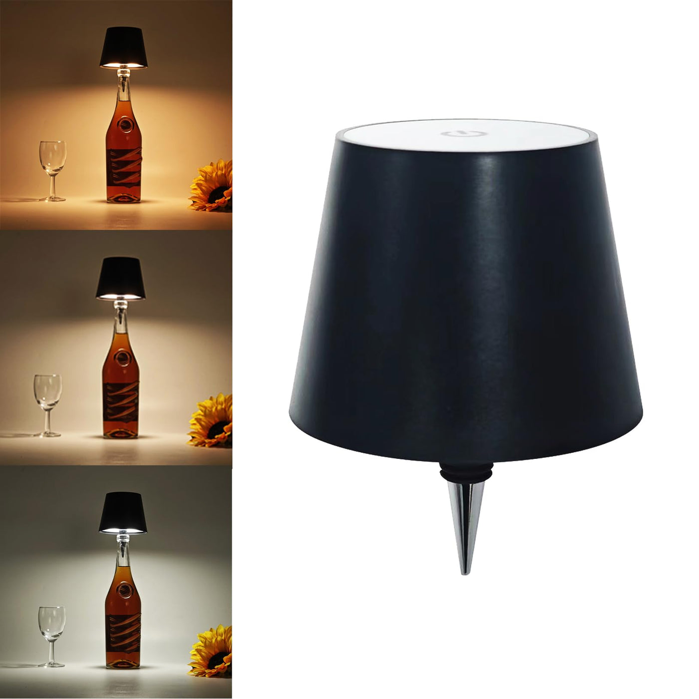 Cute Led Wine Bottle Lamp,3 Color Wireless Bottle Table Lamp, Touch Control Wine Bottle Night Light, Rechargeable Led Bedside Lamp, Embed Portable Bottle Lights For Livingroom/Restaurant/Bar (Black)