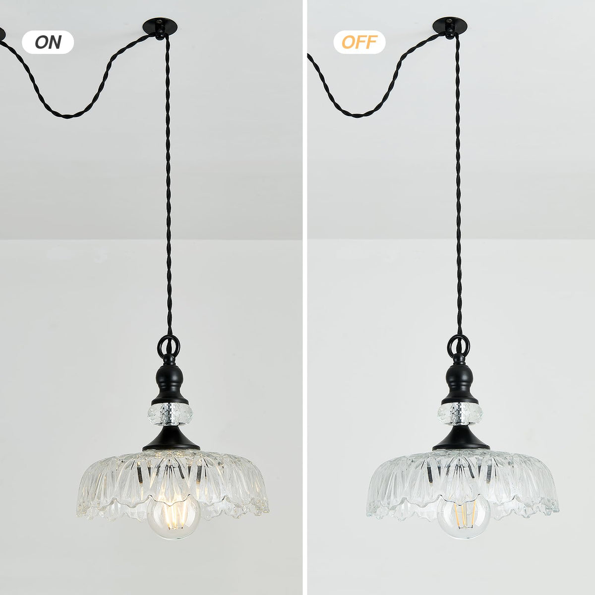 Cvkash Plug In Glass Pendant Light Fixture Black Vintage Adjustable Chandelier Hanging Ceiling Light For Farmhouse Hallway Bedro