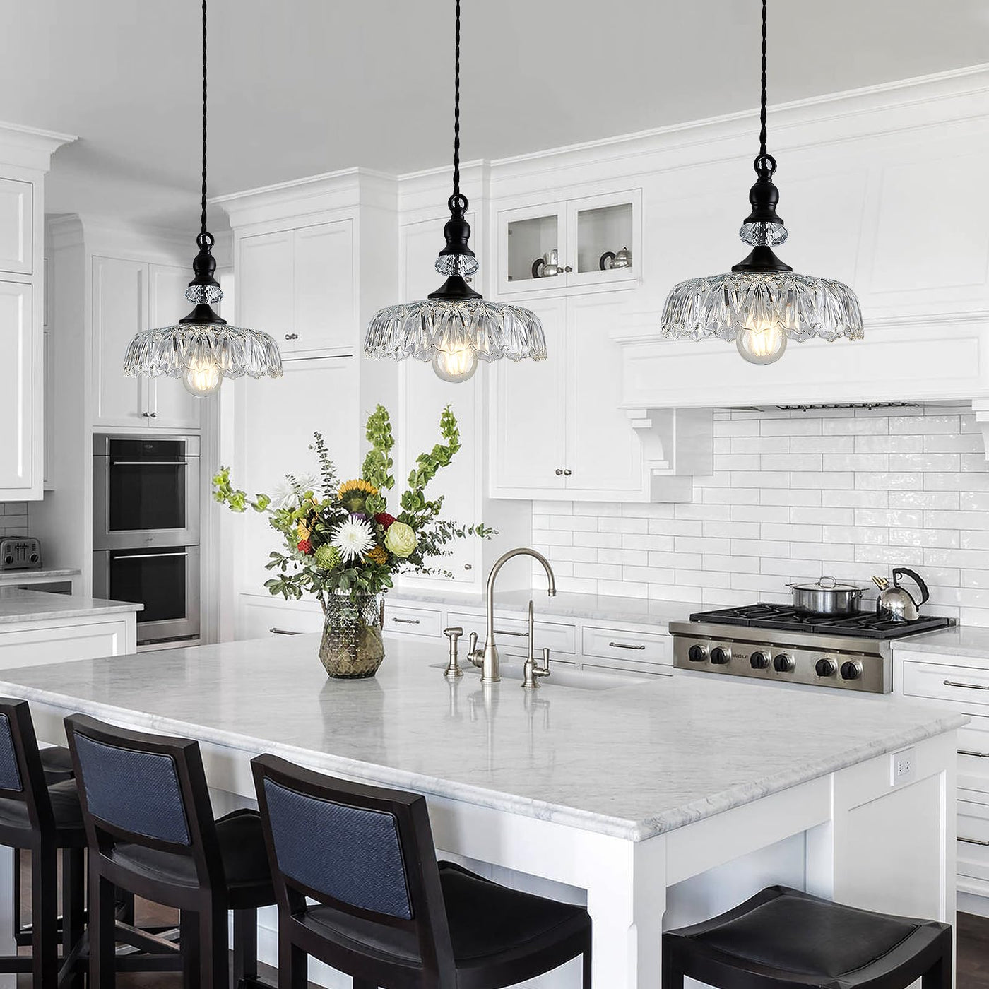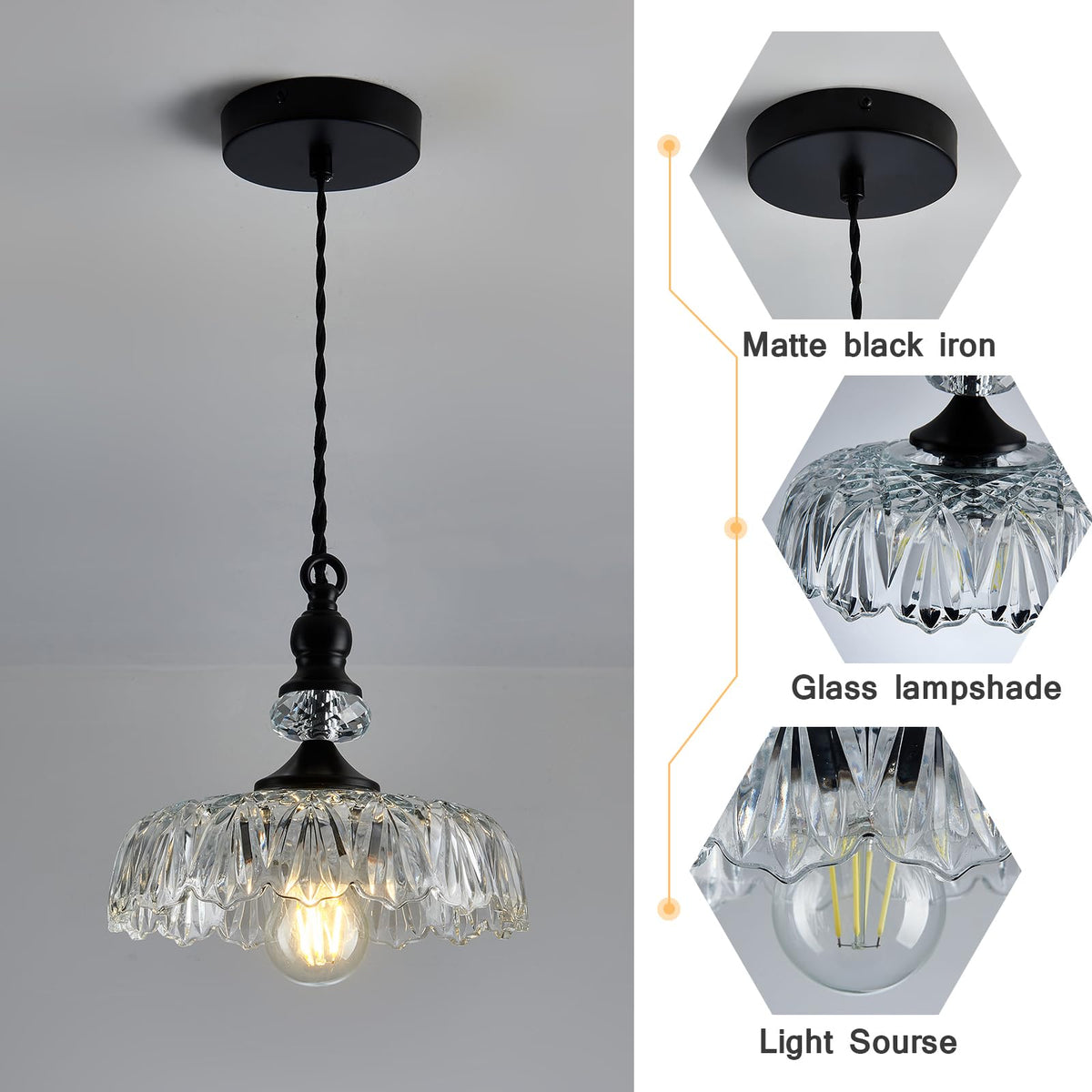 Cvkash Vintage Glass Pendant Light Fixture Black Modern Adjustable Chandelier Hanging Light For Farmhouse Dining Room Kitchen Be