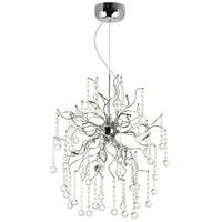 The Cherry Blossom 15 Light Chandelier promises you with a welcoming glow. Its curving branches with dripping crystal beads is a sight to behold. Complemented by the warmth of candelabra bulbs, this lighting is sure to give your ceiling some extra character. This medium-sized glam chandelier will look perfect in any room including the living room, dining room, bedroom, and even in your very spacious, high--ceiling kitchen.Lighting is jewelry for the home, and there is the perfect piece for every room. This fixture is done in a beautiful chrome finish which could be the missing piece to lighten up and fall in love with your space all over again.Features:Feel confident with your purchase and rest assured. This fixture comes with a one year warranty against manufacturers defects to give you peace of mind that your product will be in perfect condition. Indoor Application Only.Dimensions: H 25" x W 20" x L 20"Chrome Finish - G4 Bulb Not Included - Indoor (Dry Location)cETLus ApprovedIncludes Assembly Instructions and HardwareCompatible With Standard Low Voltage DimmerSpecifications:Number of Lights: 15Voltage: 120vBulb Type: G4Warranty Description: One year warranty against manufacturers defectInstallation Type: HardwiredMaterial: Metal