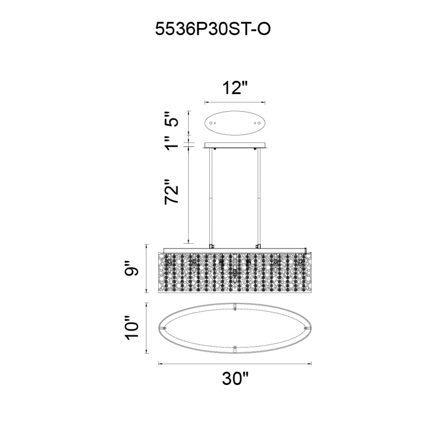 Q: What are the dimensions of the CWI Lighting Bubbles Chandelier?A: The chandelier has dimensions of H 9 inches x W 10 inches x L 30 inches, making it a suitable size for various indoor spaces.