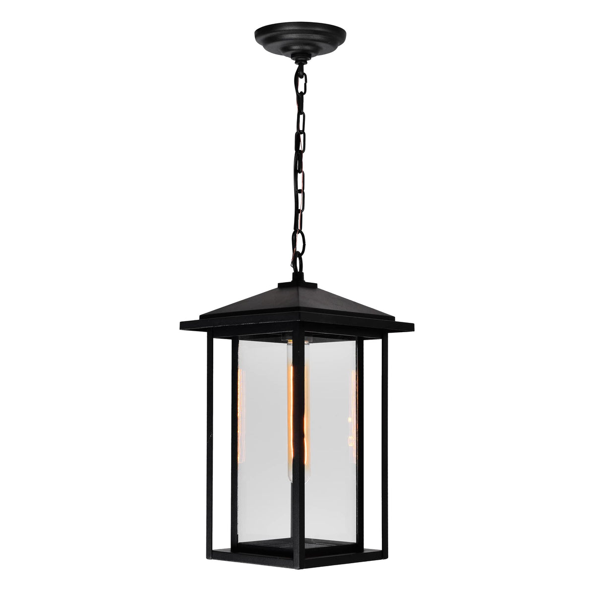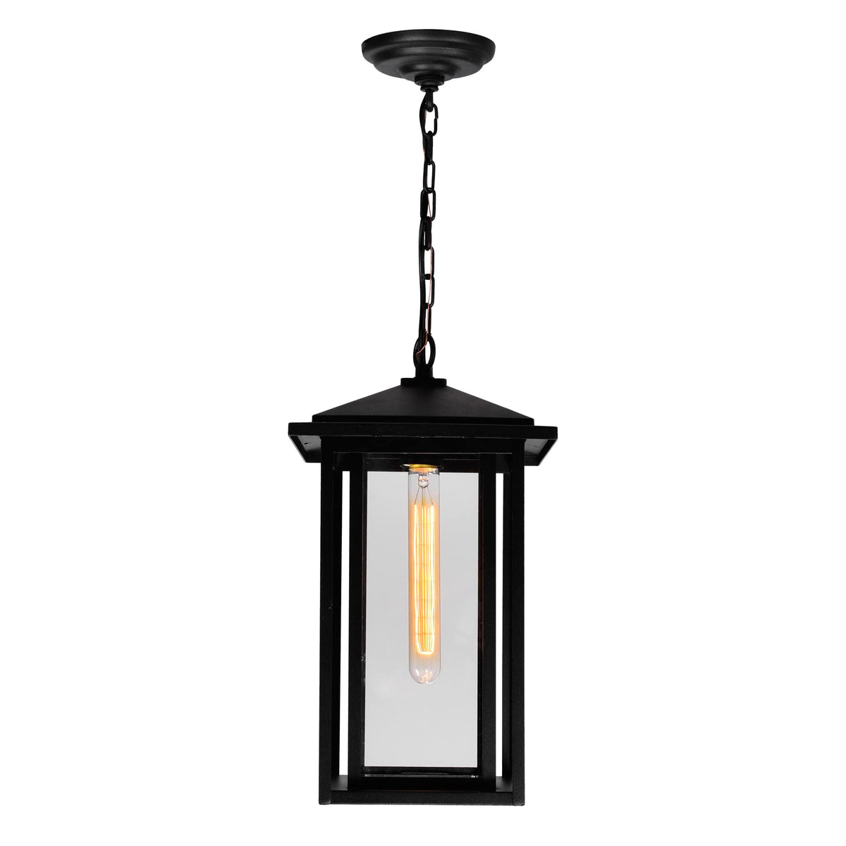 Ready to provide your outdoor space with illumination, style, and security is the Crawford 1 Light Black Outdoor Hanging Light. This light fixture has a coated metal frame and glass panels that can stand up to the elements. Its best paired with filament bulbs for that soft glow and welcoming ambiance. A multi-functional addition to your home, this outdoor lighting is one that can serve practical functions while boosting the aesthetic value of your property. Lighting is jewelry for the home, and there is the perfect piece for every room. This fixture is done in a beautiful black finish which could be the missing piece to lighten up and fall in love with your space all over again.Features :- Feel confident with your purchase and rest assured. This fixture comes with a one year warranty against manufacturers defects to give you peace of mind that your product will be in perfect condition.- Dimensions: H 17.1 x W 9 x L 9- Black Finish - E26 Bulb Not Included - Outdoor (Wet Location)- cETLus Approved- Includes Assembly Instructions and Hardware- Compatible With Standard Low Voltage Dimmer.Specifications :- Number of Lights : 1- Voltage : 120v- Bulb Type : E26- Warranty Description : One year warranty against manufacturers defect- Installation Type : Hardwired- Material : Metal.