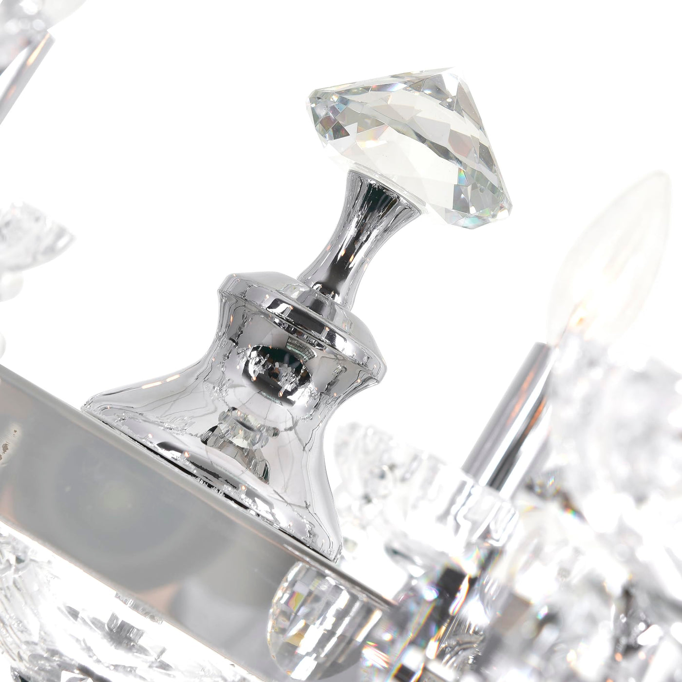 Q: What material is the chandelier made of?A: The chandelier is made of metal, featuring a beautiful chrome finish that enhances its modern appeal.