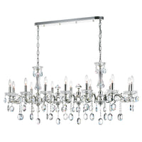 The dynamic look of the Flawless 14 Light Chandelier in Chrome is what makes it special. Its design combines the old with the new and creates a charming in-between appeal. Perfect over your dining table or your upscale kitchen island, this up chandelier is bound to add character to wherever you choose to place it. The 52 inch long horizontal assembly of modern candelabras and faceted crystals will give any space a classic and contemporary, multi-layered allure.Lighting is jewelry for the home, and there is the perfect piece for every room. This fixture is done in a beautiful chrome finish which could be the missing piece to lighten up and fall in love with your space all over again.Features:Feel confident with your purchase and rest assured. This fixture comes with a one year warranty against manufacturers defects to give you peace of mind that your product will be in perfect condition. Indoor Application Only.Dimensions: H 22" x W 22" x L 54"Chrome Finish - E12 Bulb Not Included - Indoor (Dry Location)cETLus ApprovedIncludes Assembly Instructions and HardwareCompatible With Standard Low Voltage DimmerSpecifications:Number of Lights: 14Voltage: 120vBulb Type: E12Warranty Description: One year warranty against manufacturers defectInstallation Type: HardwiredMaterial: Metal