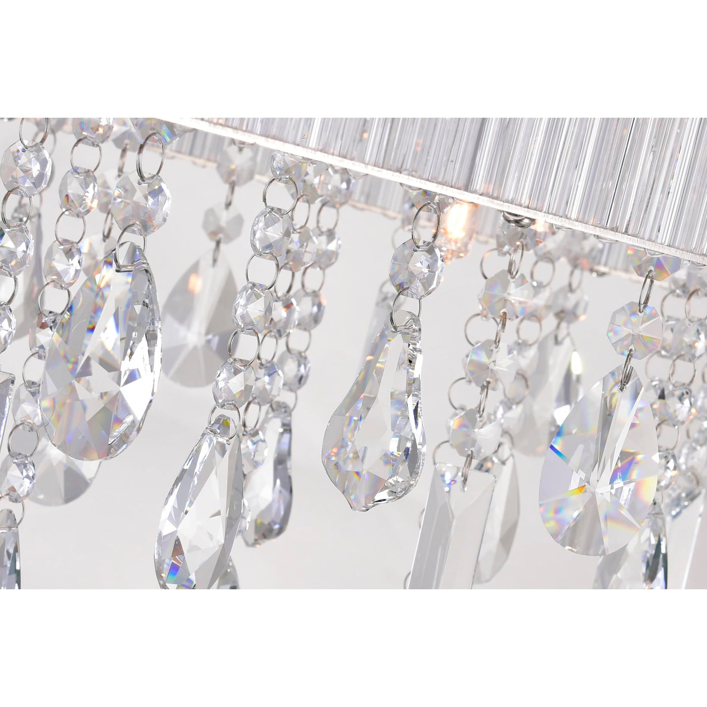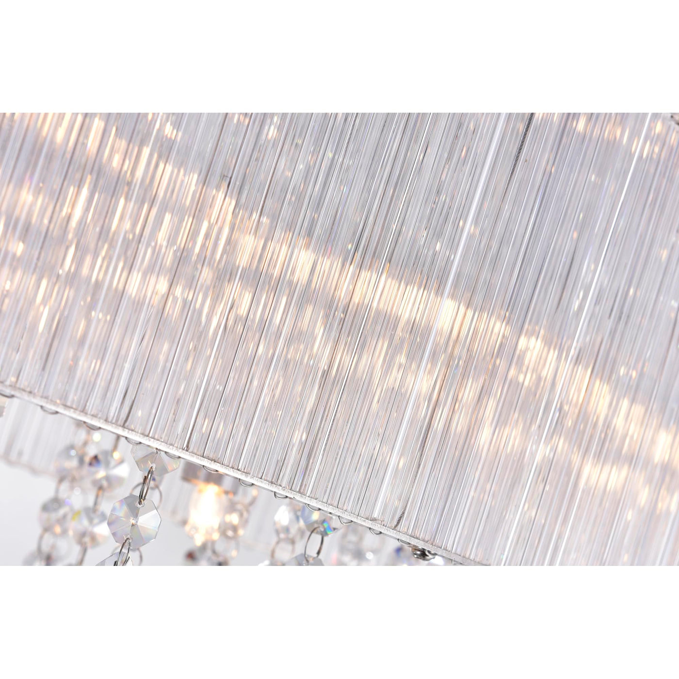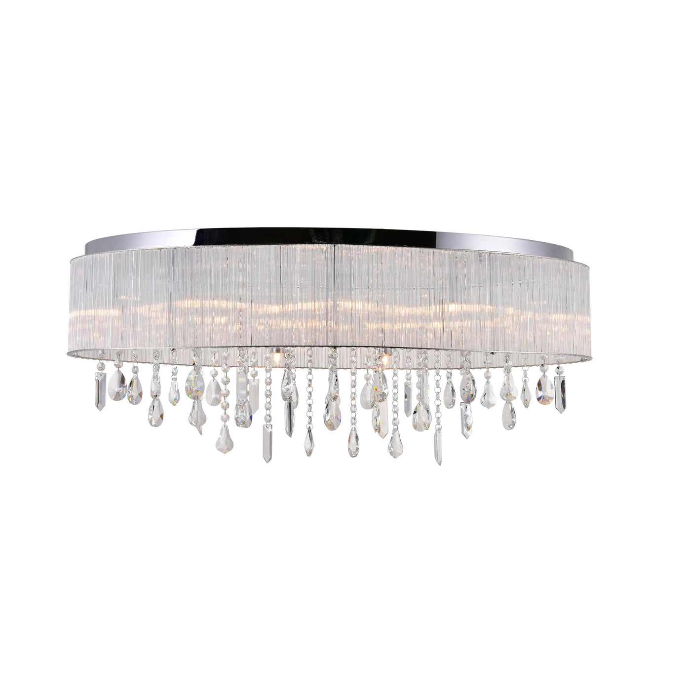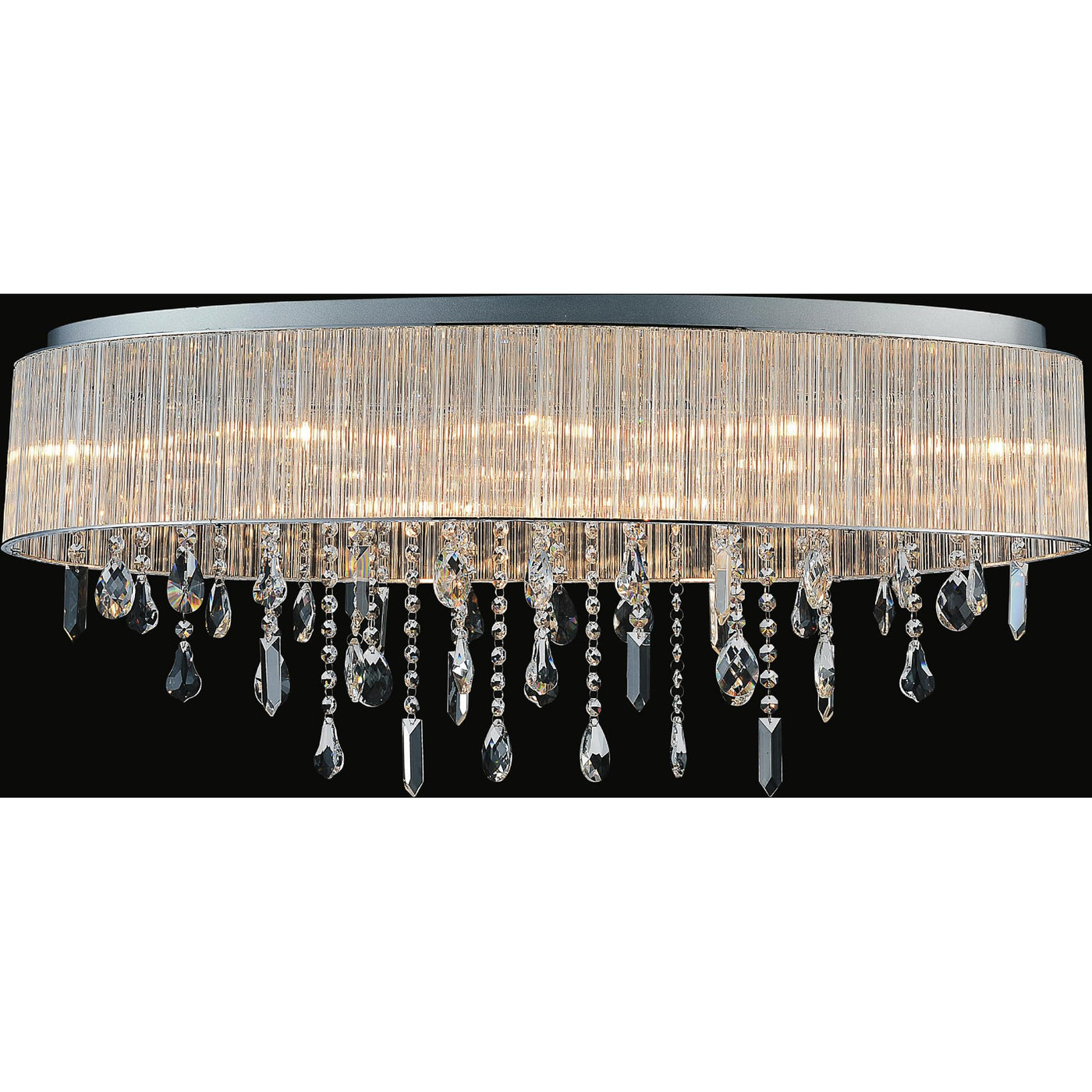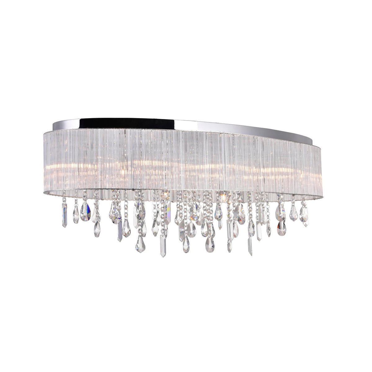 CWI LIGHTING 5558C34C-O 10 Light Drum Shade Flush Mount with Chrome finish. This breathtaking 10 Light Drum Shade Flush Mount with Chrome finish is a beautiful piece from our Jacquimo Collection. With its sophisticated beauty and stunning details, it is sure to add the perfect touch to your d cor. Collection: Jacquimo. Finish: Chrome. Material: Metal (Stainless Steel). Crystals: K9 Clear. Shade Color: Clear. Shade Material: Glass. Hanging Method / Wire Length: Comes with 6 of wire. Dimension(in): 34(W) x 12(H) x 15(L). Max Height(in): 12. Bulb: (10)40W G9 Bi-Pin Base(Not Included). CRI: 80. Voltage: 120. Certification: ETL. Installation Location: DRY. One year warranty against manufacturers defect.