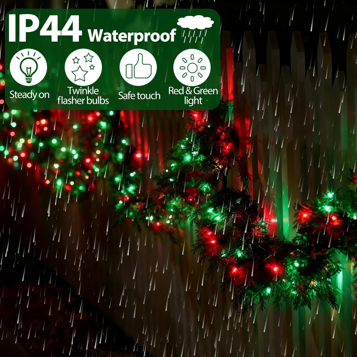 Enhance Your Christmas Experience With Our well-made Red And Green Mini Christmas Lights Outdoor String Lights Which Are 25Feet Available With Steady Lighting And Twinkling Lighting. It Can Be Connected To Meet Your Lighting Range Needs Easy To Install And Suitable For Most Scenes Allowing Everyone To Integrate Into The Atmosphere Of The Festive Season! Create A Captivating And Enchanting Ambiance With Our 25Ft Red And Green Mini Christmas Tree Lights. Come With 100 Incandescent Bulbs These Lights Will Add A Touch Of Magic To Your Holiday Decorations And Infuse Your Space With A Cozy Sparkle Glow. Specification Brand: Cxlho Light Color: Red And Green Wire Color: Green Wire Length: 25Ft Bulb Quantity: 100 Count Bulb Spacing: 3 Inch Lead Wire: 18 Inch End Wire: 3 Inch Waterproof: Ip44 Bulb Type: Incandescent Bulbs Input Voltage: 120V Amperes: 0.34Apower Source: Plug In