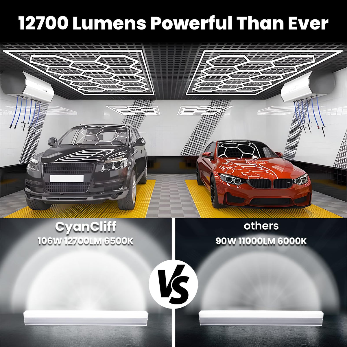 Cyancliff Hexagon Garage Led Lights.2 Grid 106W 12700Lm 6500K Hex Honeycomb Ceiling Led Light.Higher Brightness Honeycomb Hexago