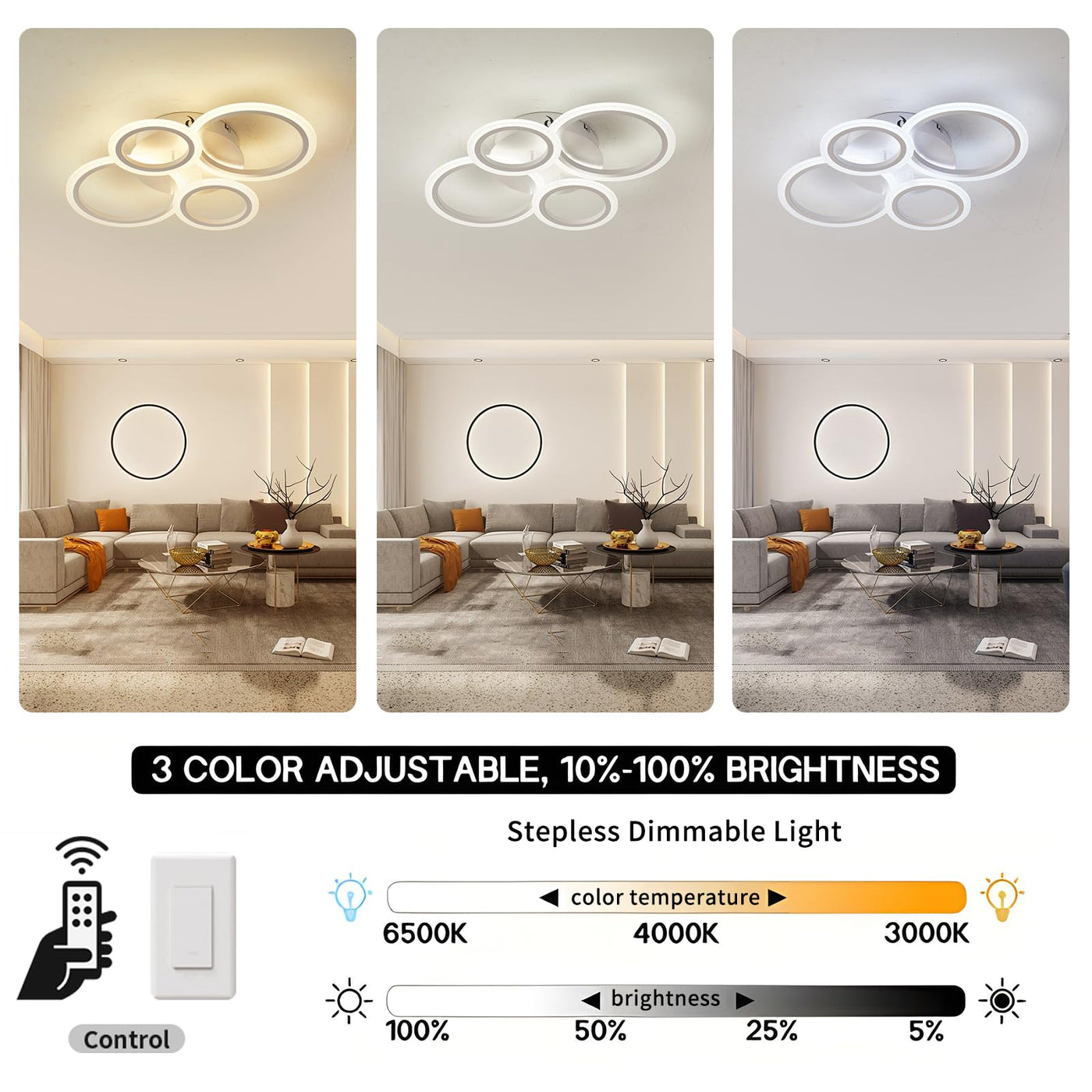 Cyaruy Led Ceiling Light With Remote, 3000K-6500K Dimmable, 4-Ring White Round Chandelier, Semi-Flush Mount Ceiling Lamp For Liv