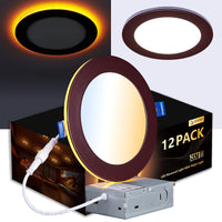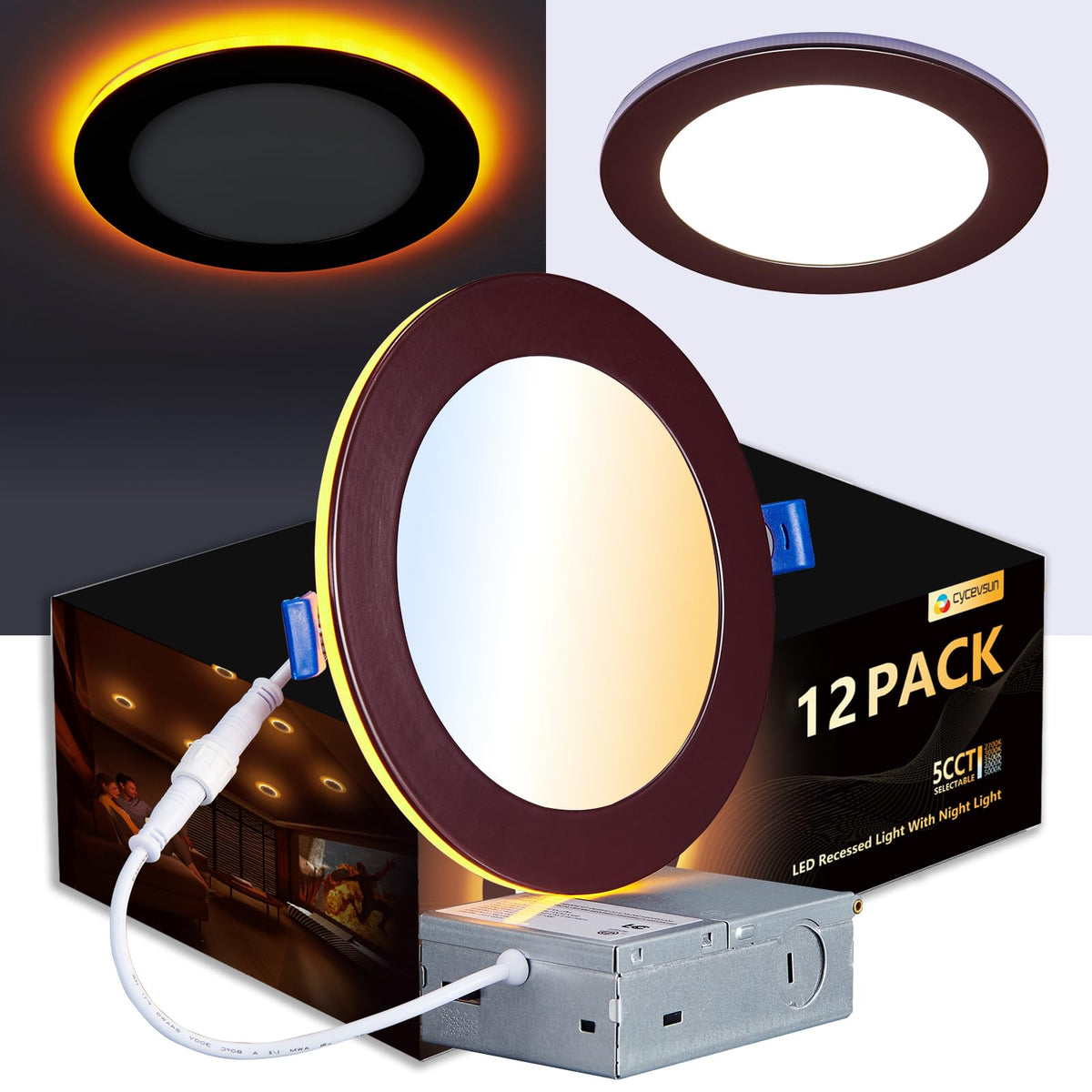 Cycevsun 12 Pack Bronze Recessed Lighting 6 Inch With Night Light, Canless Ultra Thin Wafer Downlight Pot Outdoor Exterior Soffi