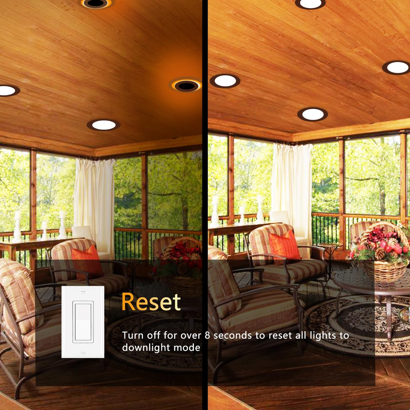 This Recessed Lighting 6 Inch With Night Light Mode Emits 2000K Amber Ambient Light. 5 Color Temperature Selectable Come With It. Just Choose Your Preferred Color Temperature Before Installation. 5%-100% Smooth Dimming Is Compatible With Most Dimmers. And It? Also Approved For Damp Locations To Make This Slim Light Suitable For Kitchen, Living Room, Bedroom And Even Bathroom. The Synchronization Reset Function Helps To Synchronize All The Lights In Your House Without Hassles. Qualified In Cetl Listed And Ic Rated, This 6 Inch Led Recessed Light Is Permitted To Be In Contact With Junction Boxes Made From Insulation Materials.