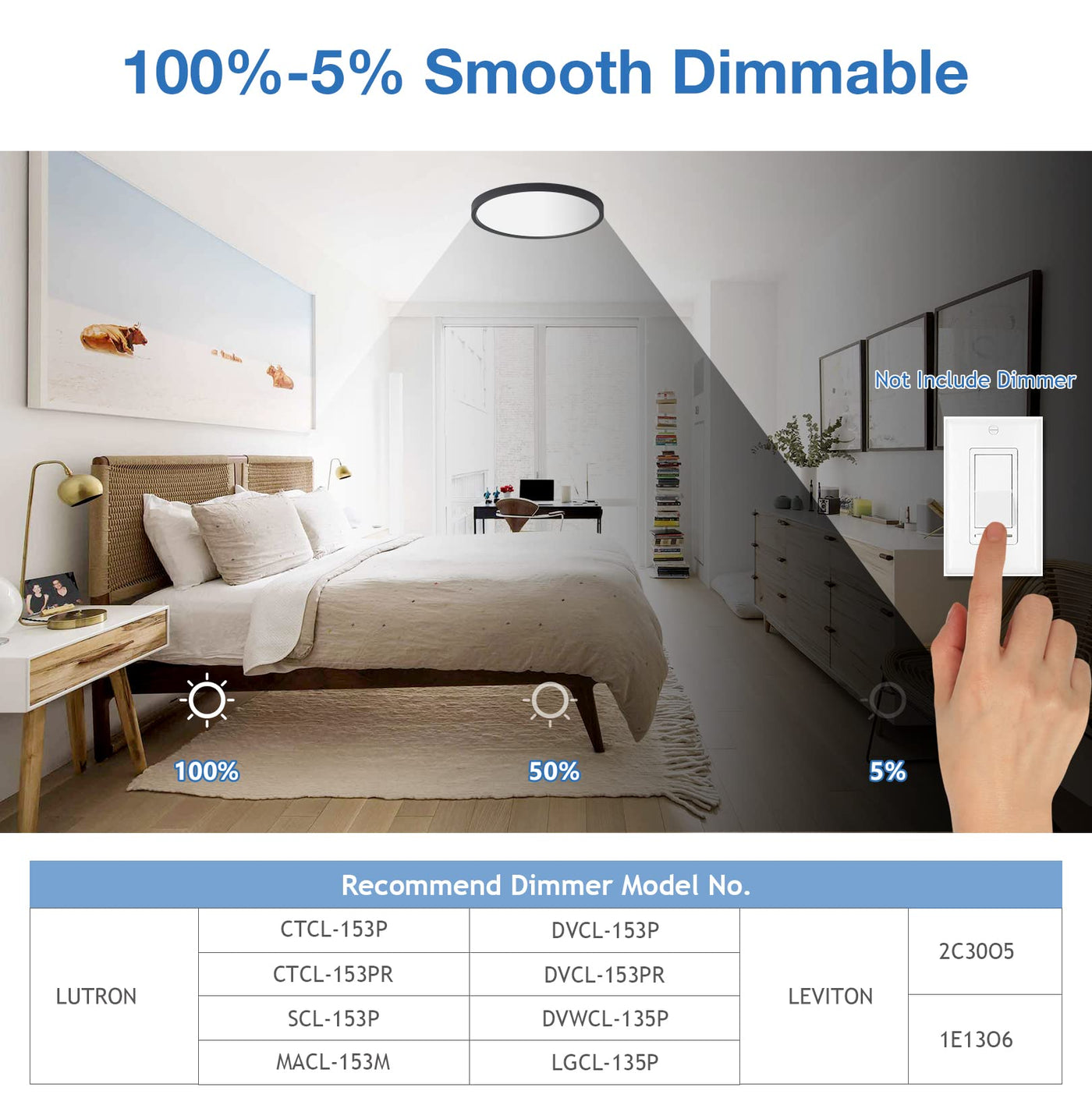 Smooth Dimming: Enjoy flicker-free and buzz-free dimming capabilities ranging from 5% to 100%, thanks to advanced American dimming chips.
