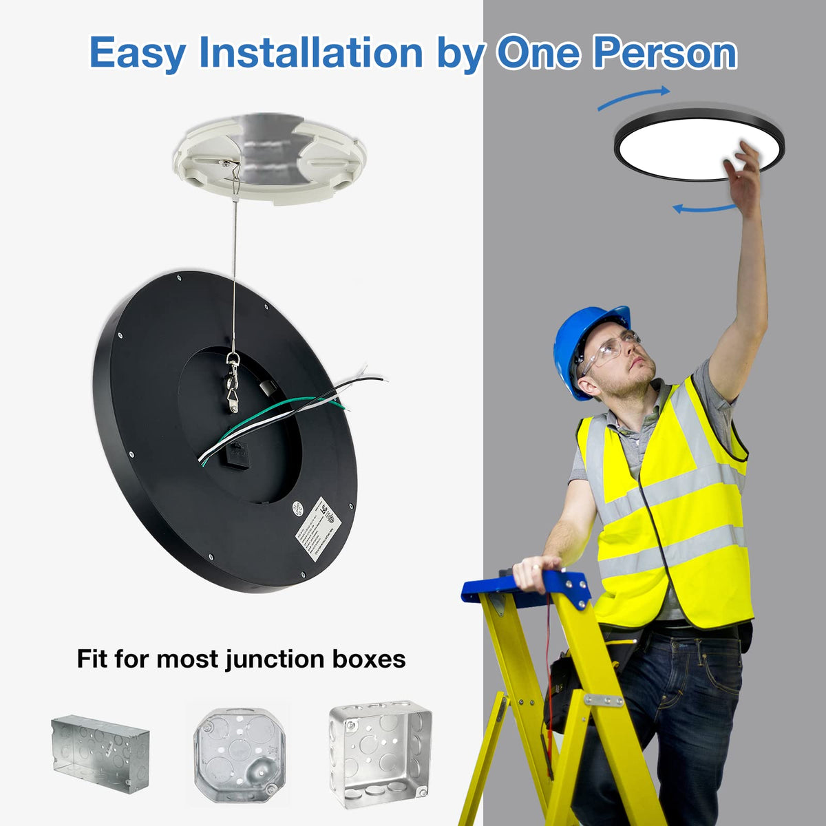 Cycevsun 15.8 Inch Black Flush Mount Ceiling Light Dimmable, 6 Pack, 24W, 3 Color Temperature Seletable, Etl