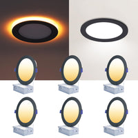 Cycevsun 6 Pack Black Recessed Lights 6 Inch With Night Light, Canless Ultra Thin Wafer Downlight Indoor Outdoor Exterior Soffit