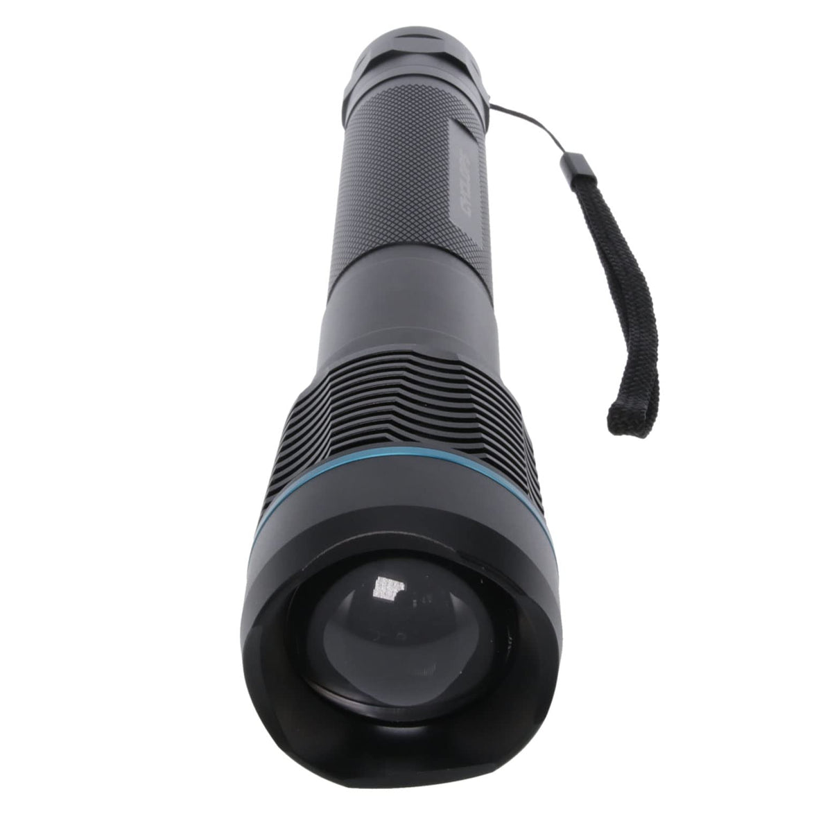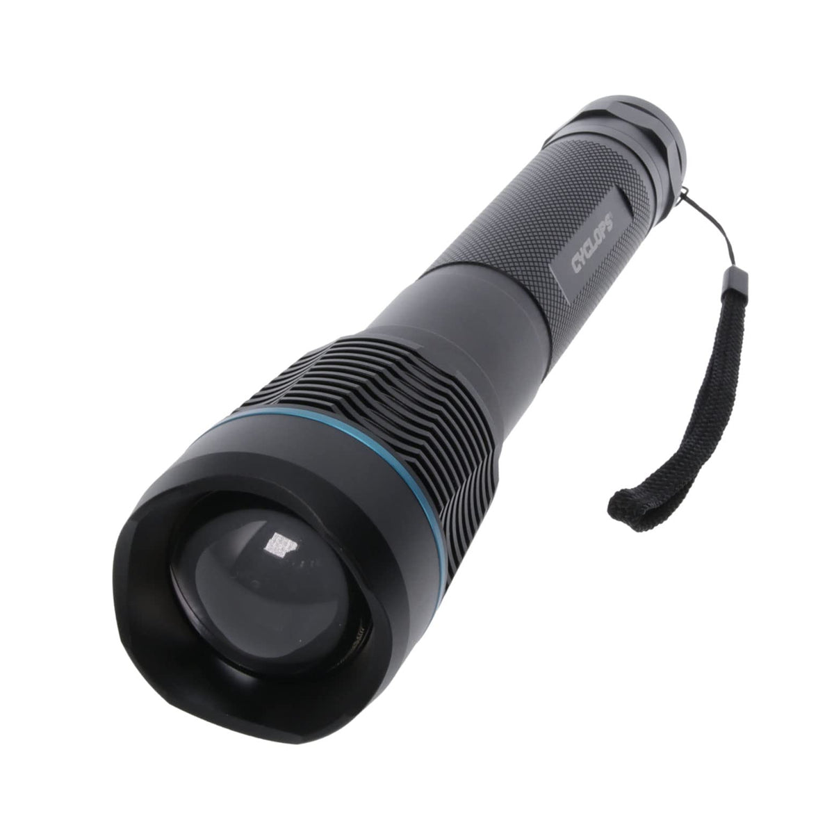 Cyclops Brontes 2000 Lumen FlashlightThe Cyclops Brontes flashlight is made using a 6063-T6 aluminum alloy in an anodized finish. The flashlight performs with a brightness of 2000 lumens and a light range up to 437 yards. Run time is up to 2 consecutive hours. This flashlight is built for any environment. Truly a remarkable light that you can keep in your truck, toss in your hunting backpack, or place in a drawer at home in case of an emergency.FEATURES:- Light Source: CREE XHP50.2 20W LED * 1;- Power Source: Energizer AA - 9 included;- Weight: 420grams (net);- Material: Aluminum Alloy 6063-T6;- Anodized Finish;- Switch:Tailcap100%-30%-10%-SOS-8HZ;- IPX7;- Twist Focus;- Performs brightness of 2000 lumens (100%);- Light range up to 400 meters (100%);- Works consecutive 2 hours (100%);ABOUT CYCLOPS - Lighting the way for over a decade, Cyclops has been at the forefront of lighting & portable power technology. With the continuing evolution of LED bulbs, Cyclops lights continue to get brighter and more energy efficient - year after year.